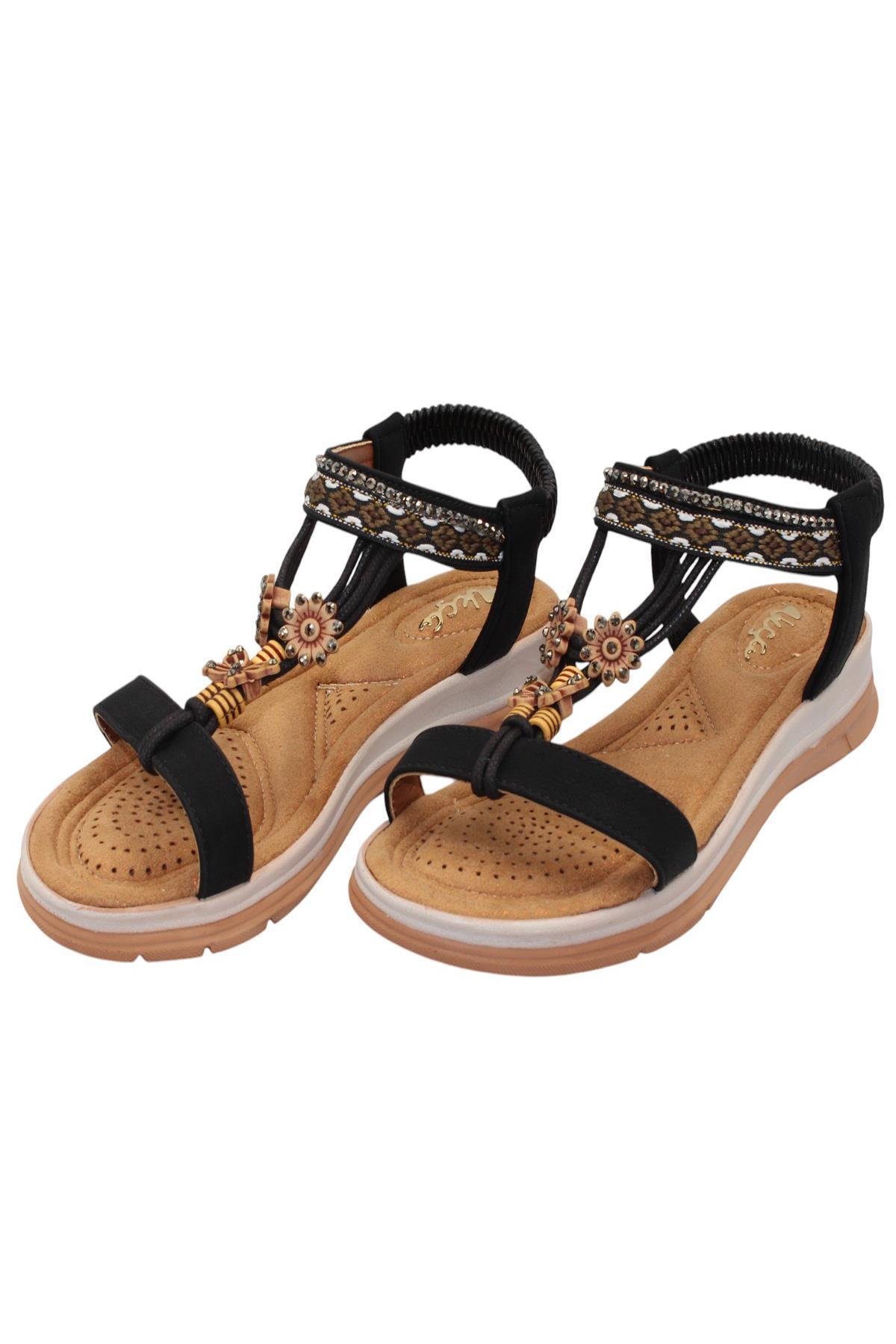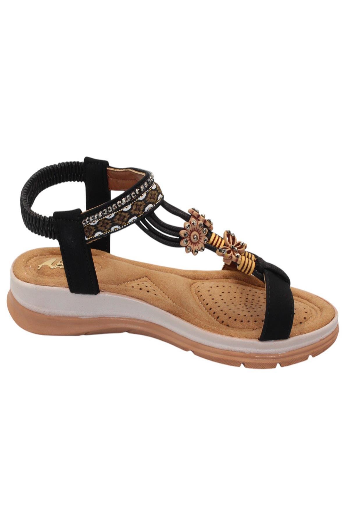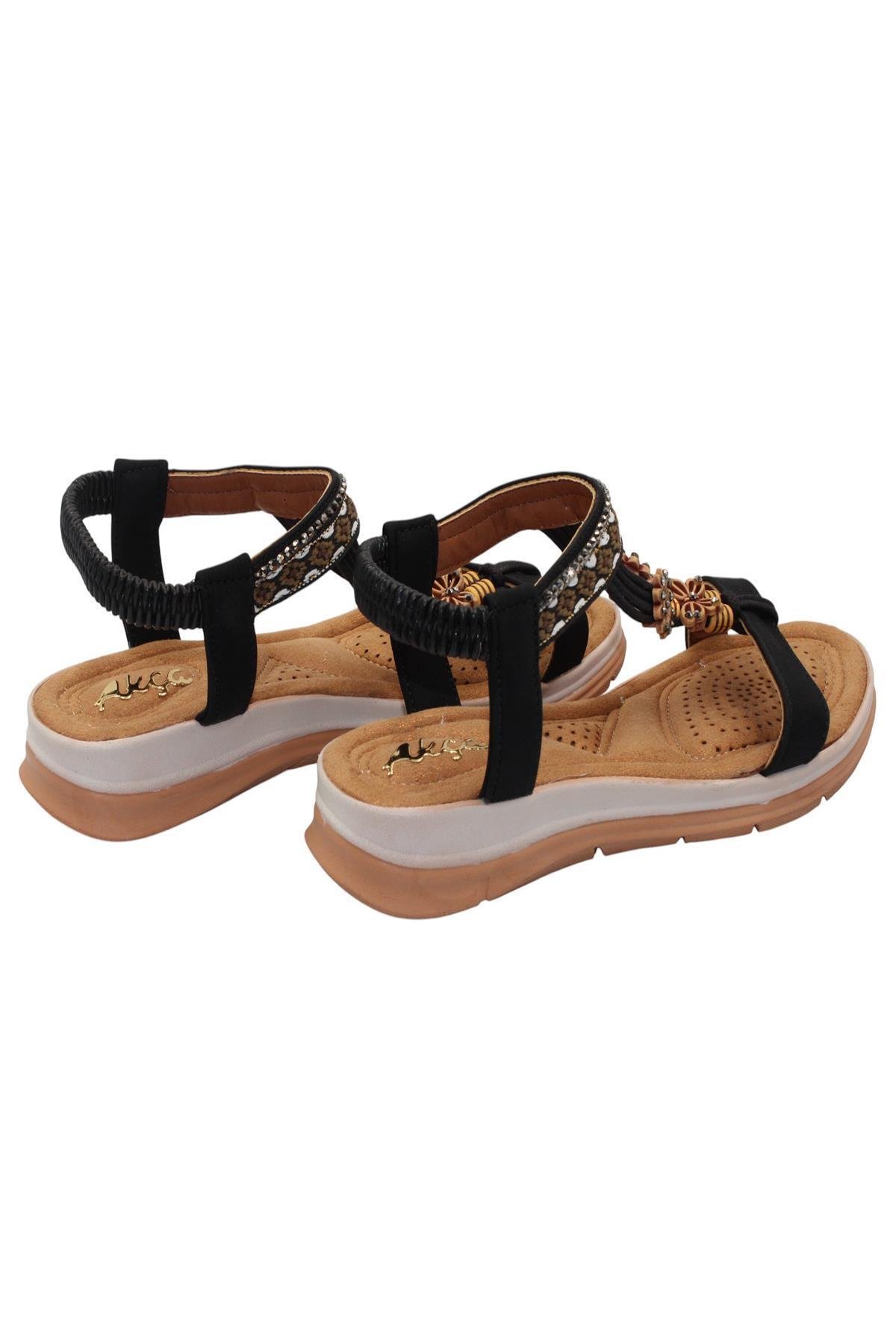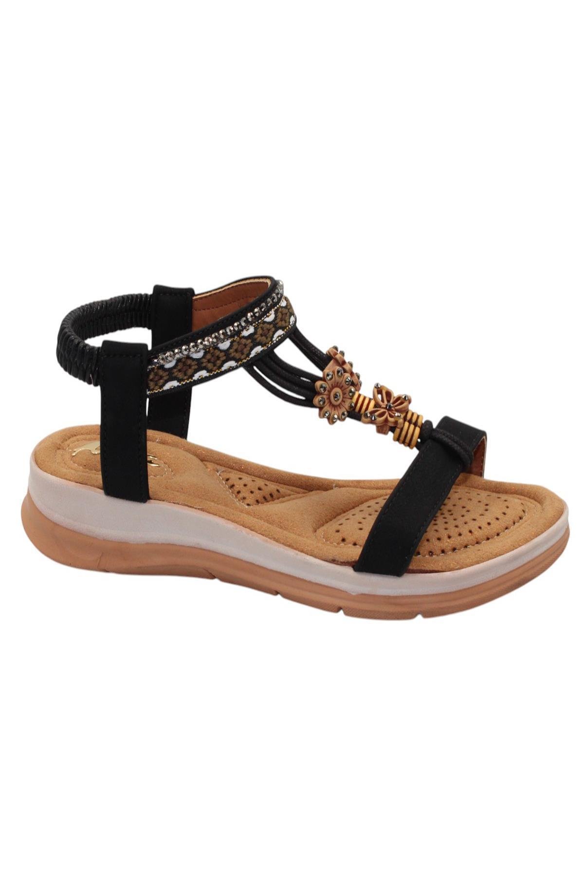 Celira Akç A25 Siyah Günlük Taşlı Kadın Sandalet Ayakkabı (HAS00311)