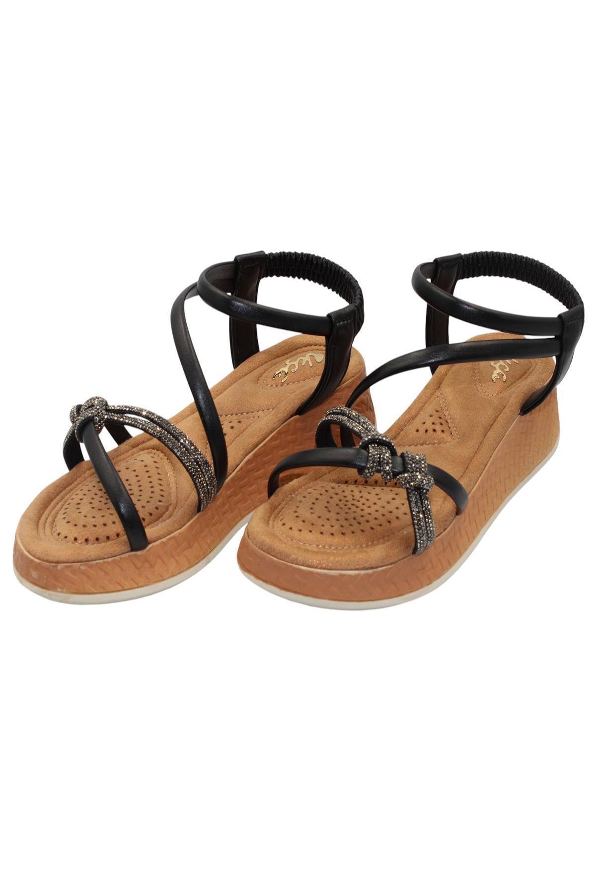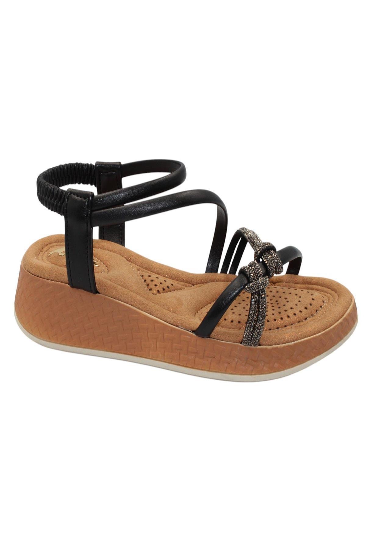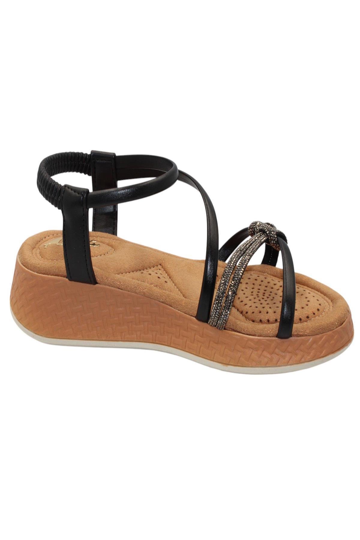 Celira Akç A32 Siyah Taşlı Kadın Sandalet Ayakkabı (HAS00320)