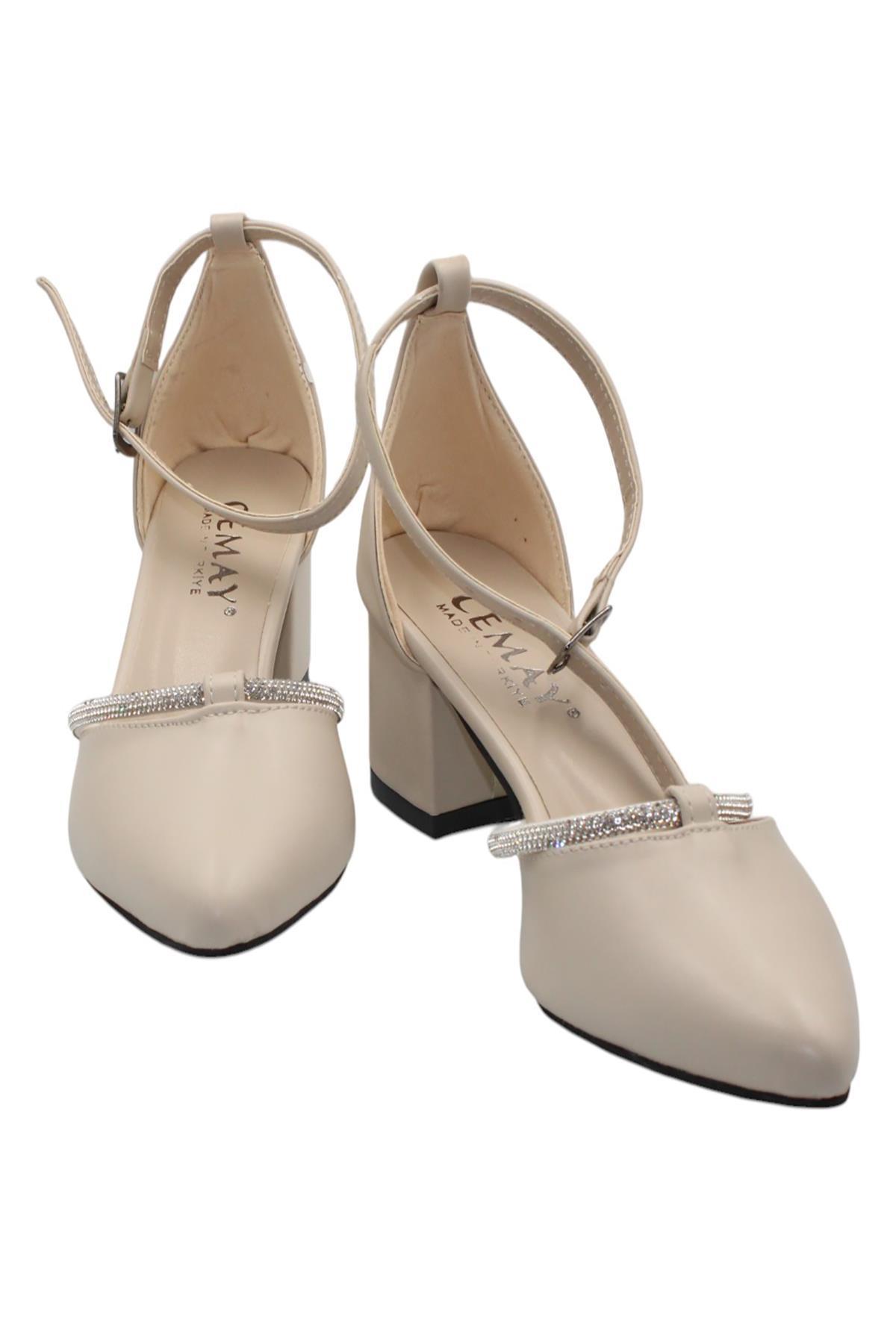 Celira Bej Kadın 5 Cm Kalın Topuklu Ayakkabı (HAS00337)