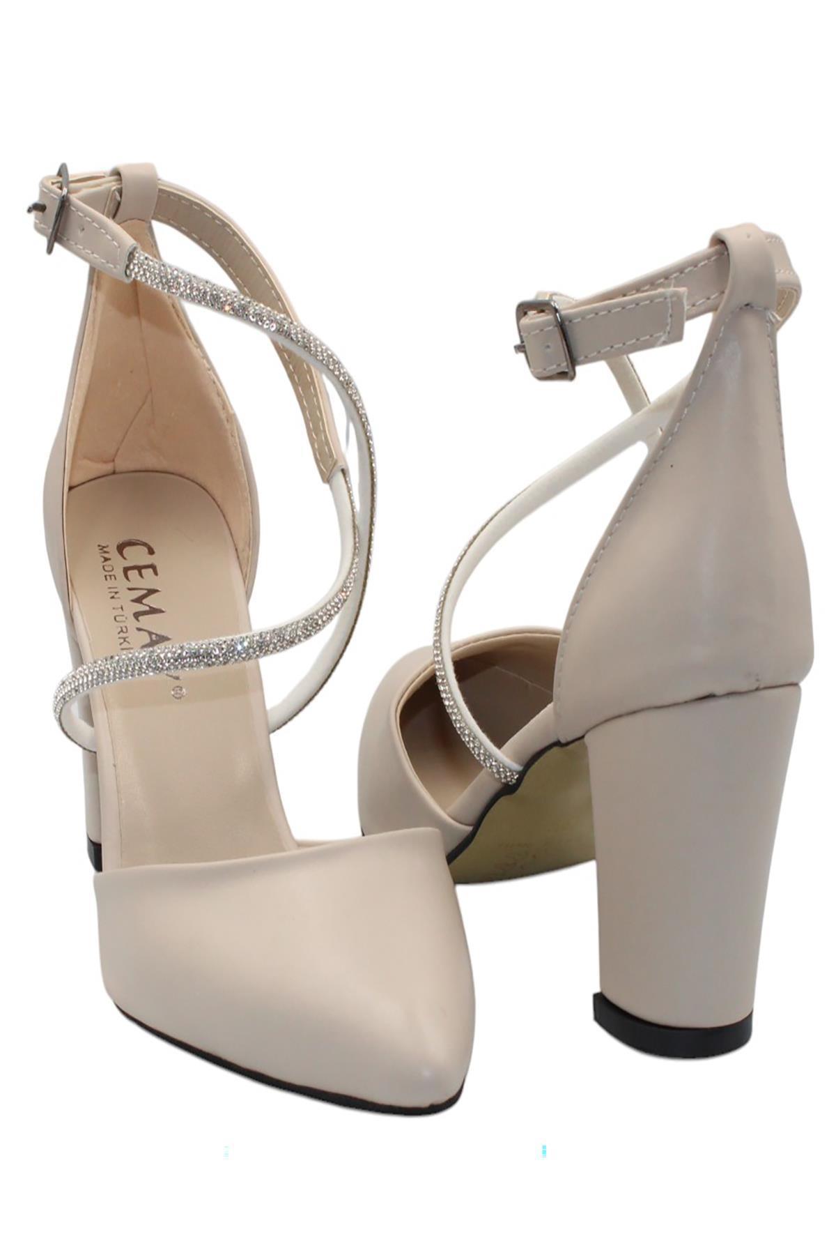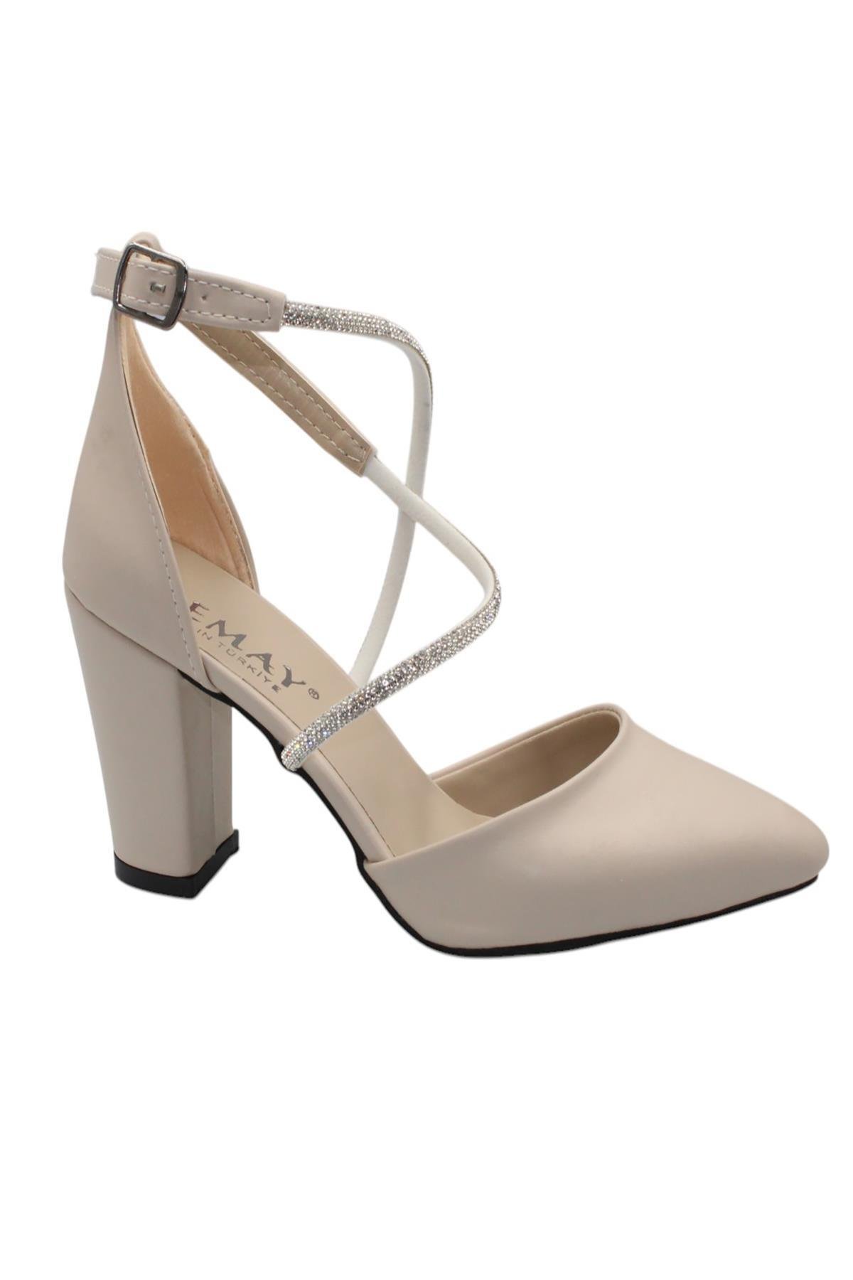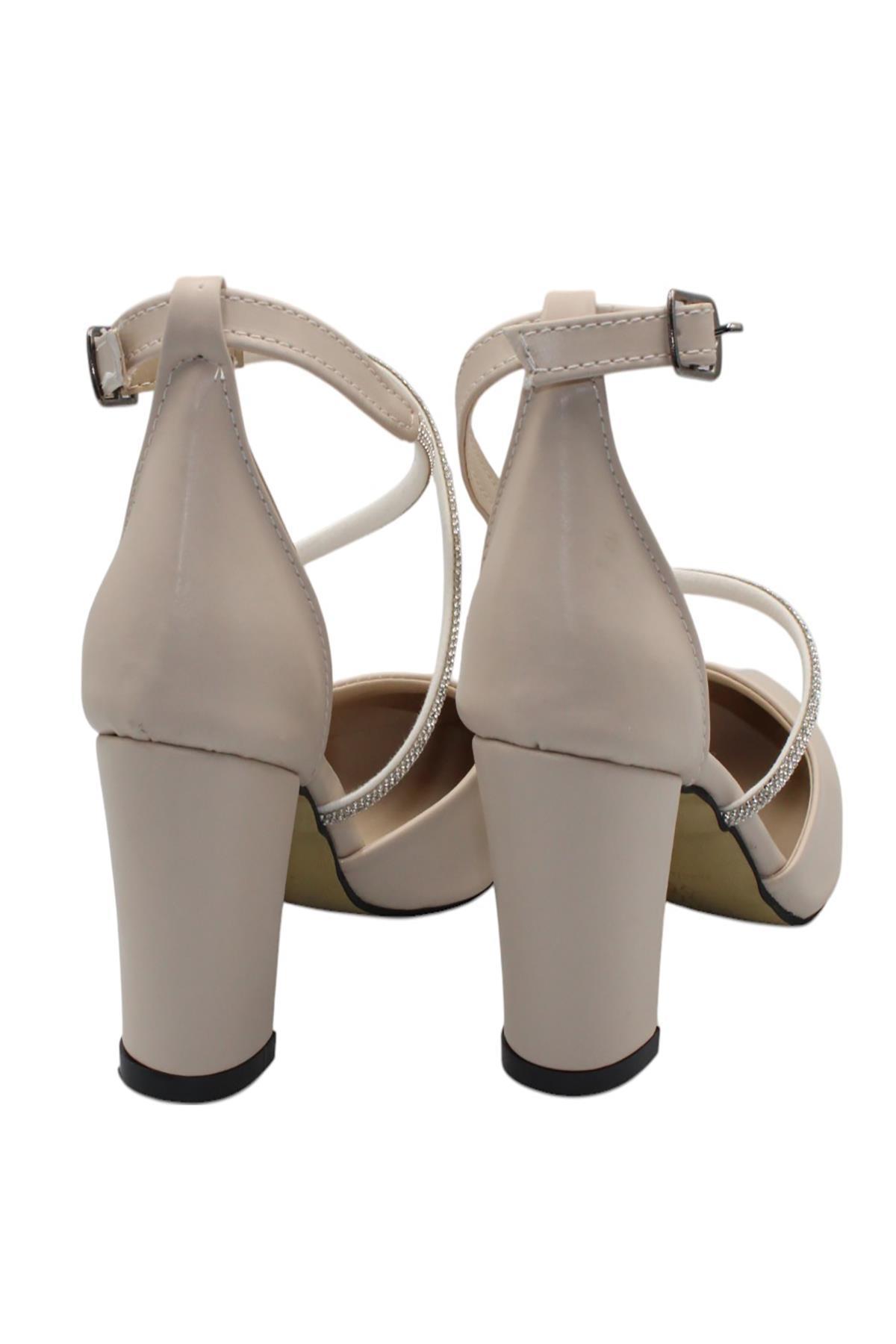 Celira Bej Kadın 8 Cm Kalın Topuklu Ayakkabı (HAS00336)