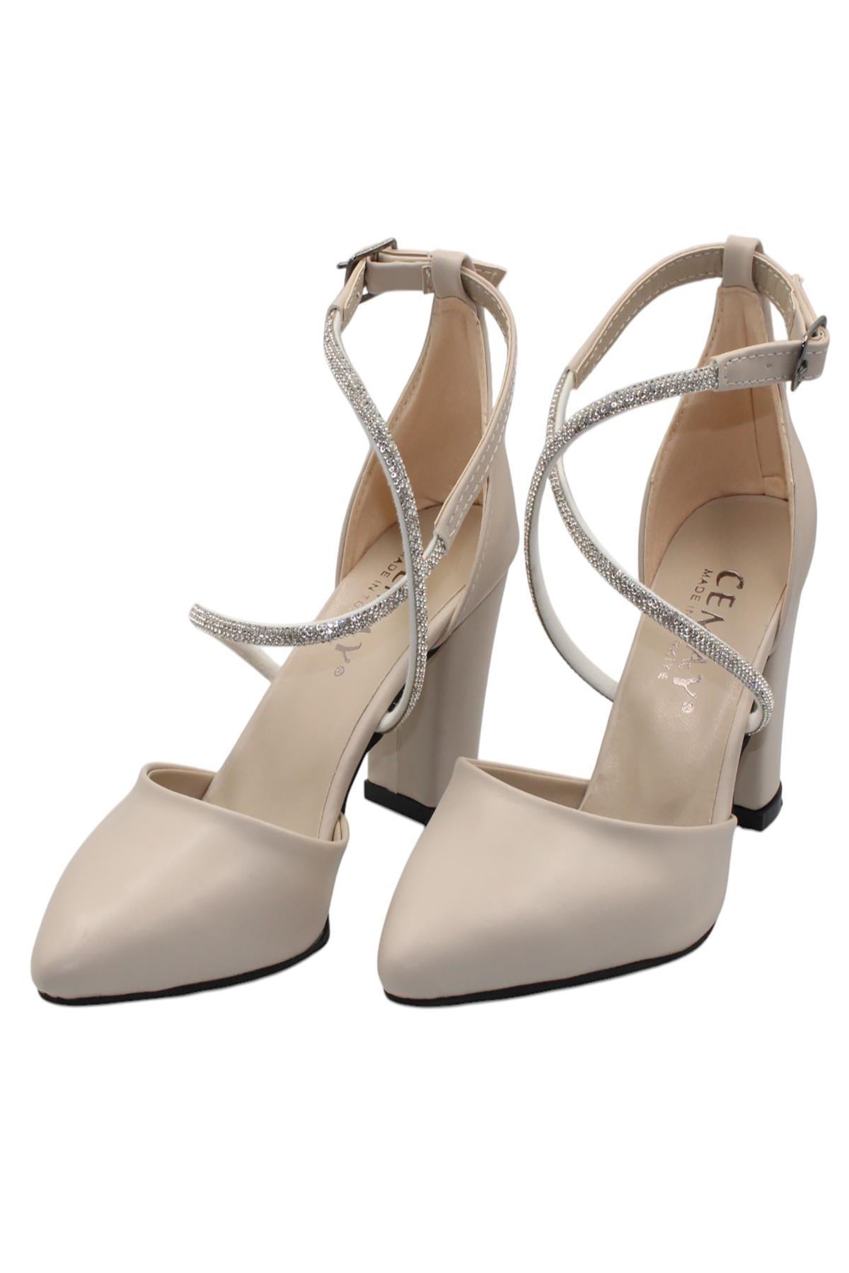 • Kadın Taşlı Biyeli Topuklu Ayakkabı