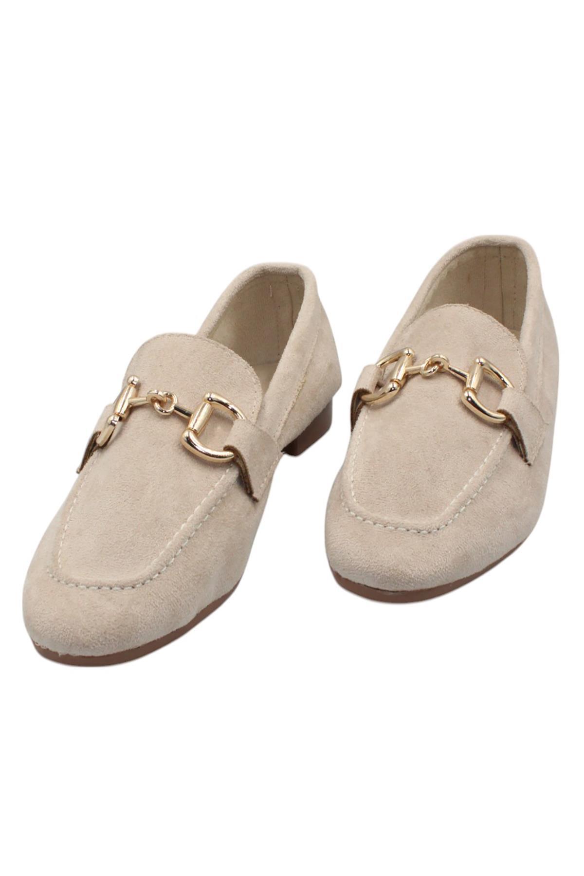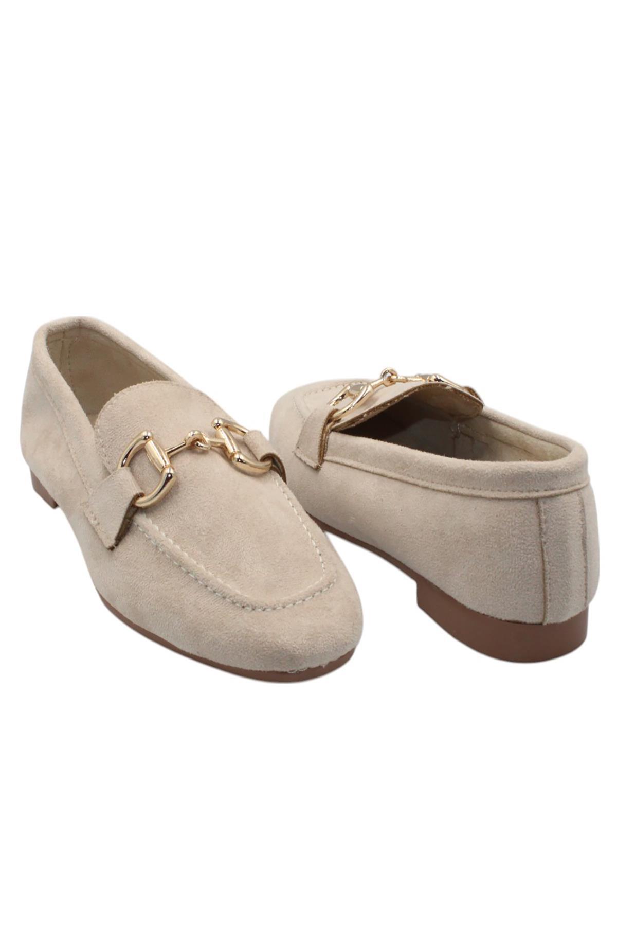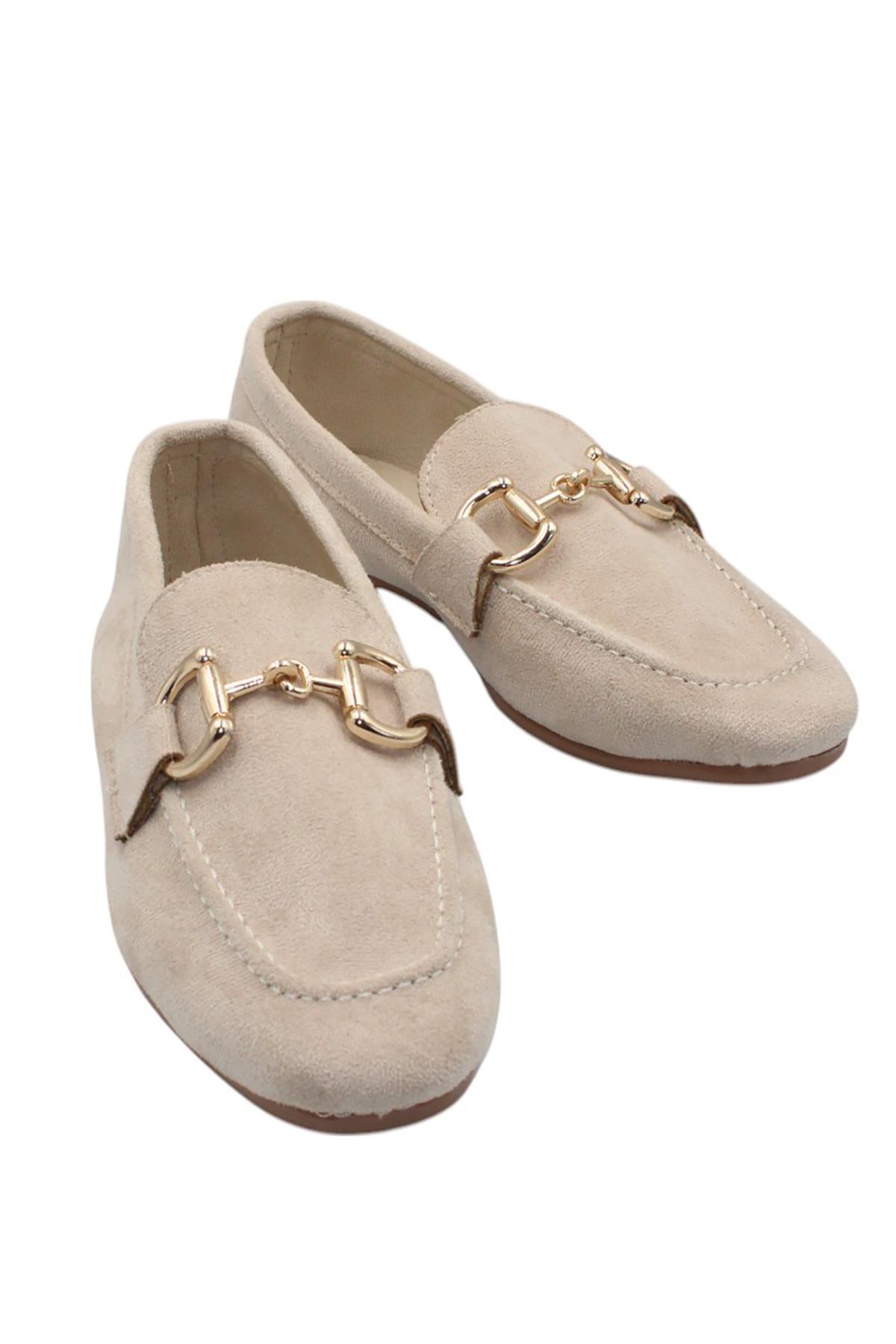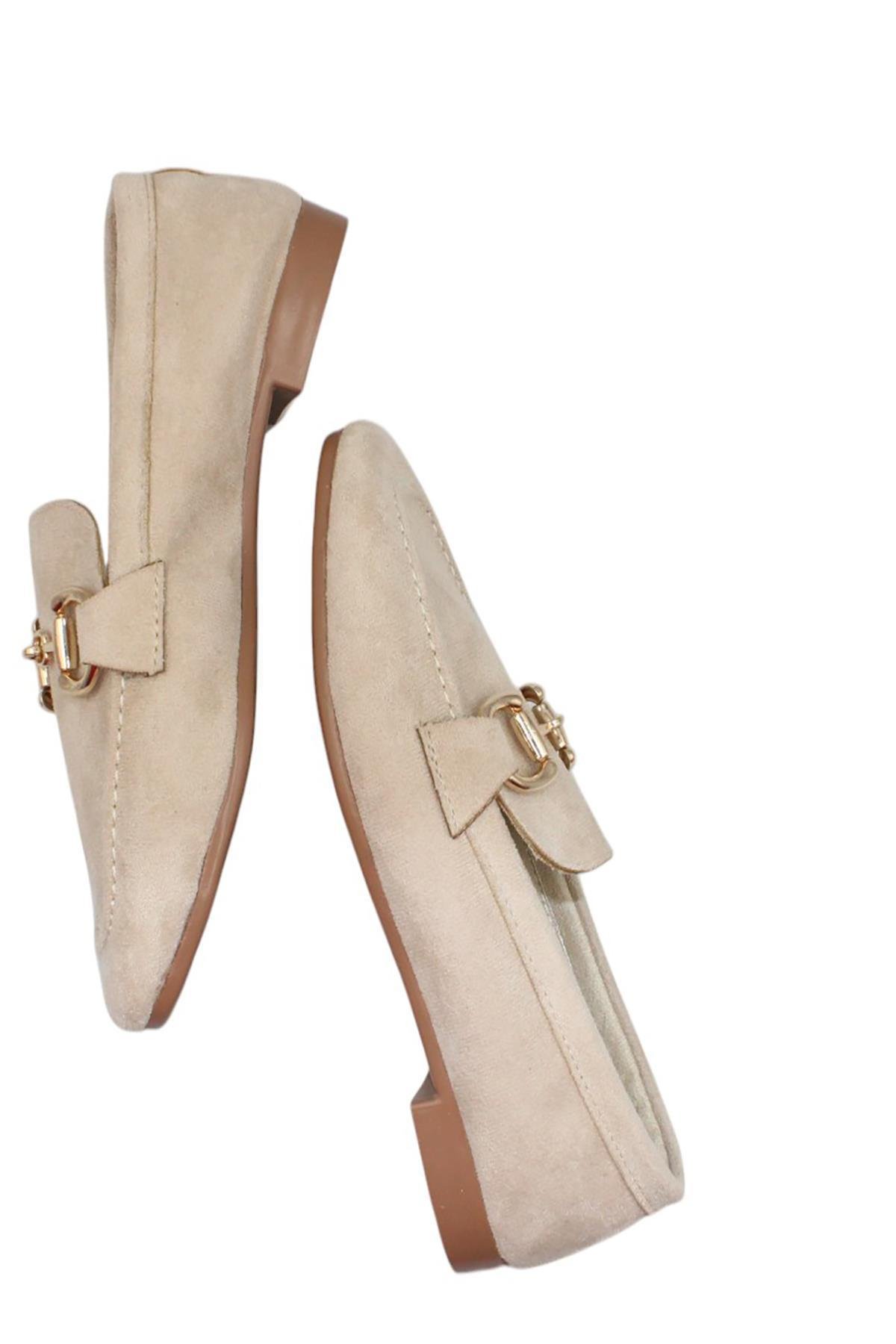 Celira Bej Kadın Tokalı Günlük Süet Babet Ayakkabı (HAS00373)