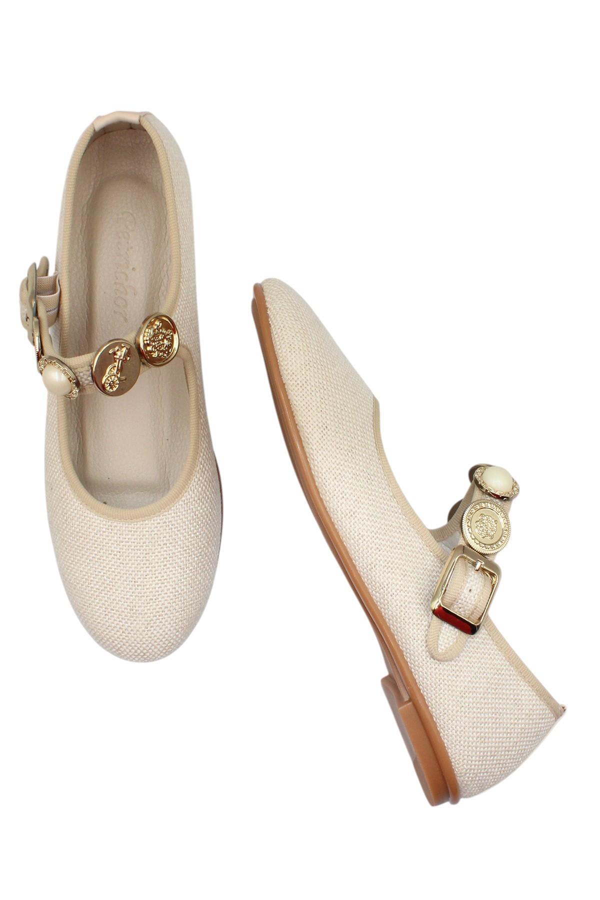 Celira Bej Kumaş Tokalı Bantlı Günlük Babet Ayakkabı (HAS00376)