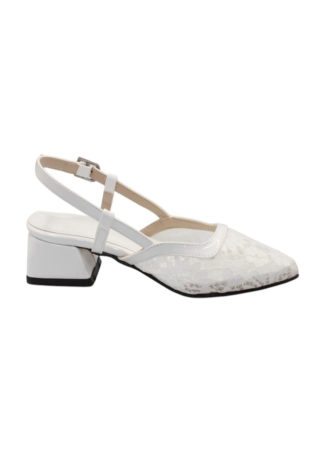 Celira Beyaz Tüllü Klasik Kısa Topuk Kadın Ayakkabı (HAS00354)
