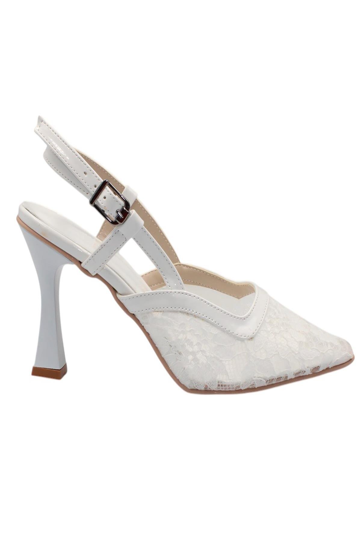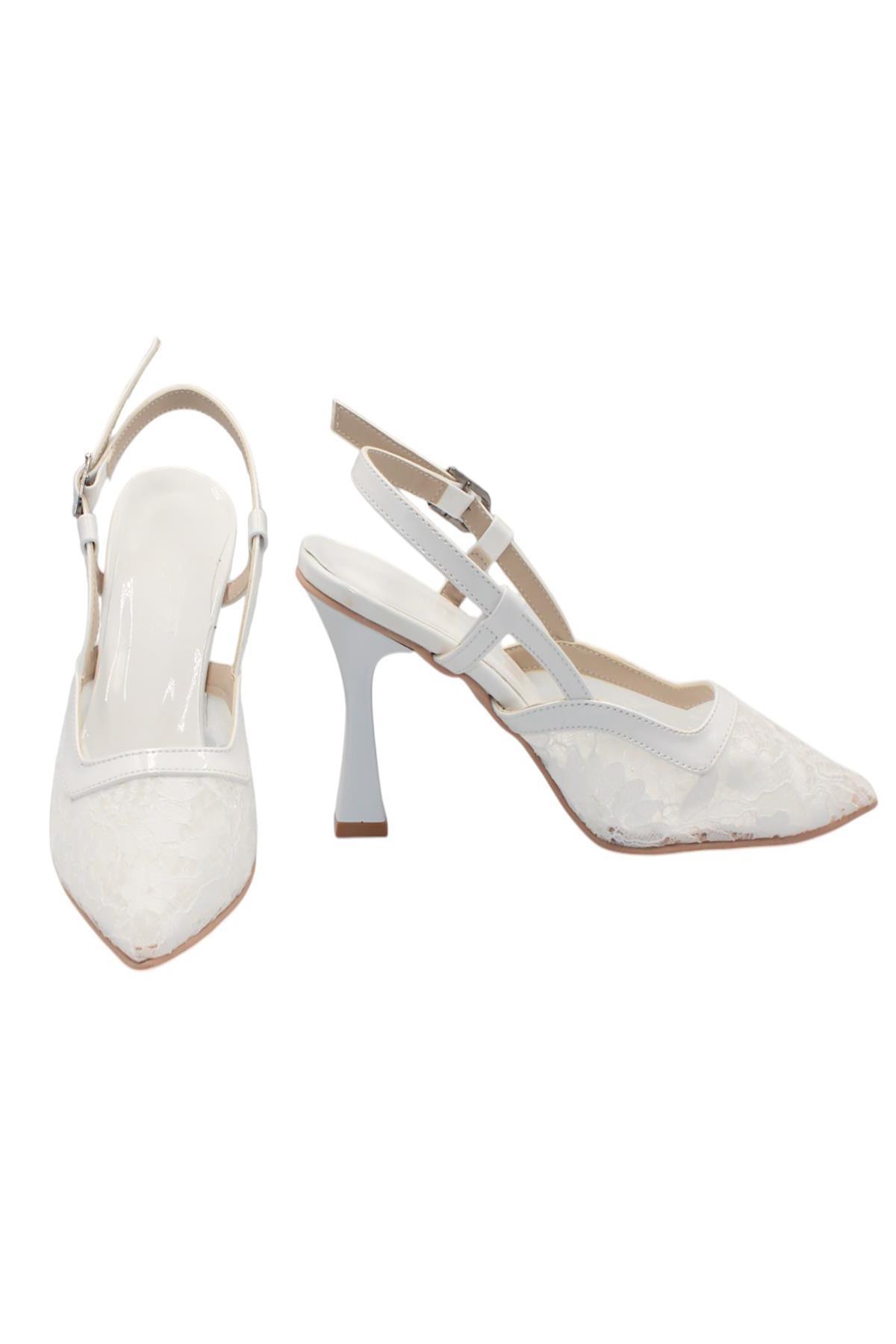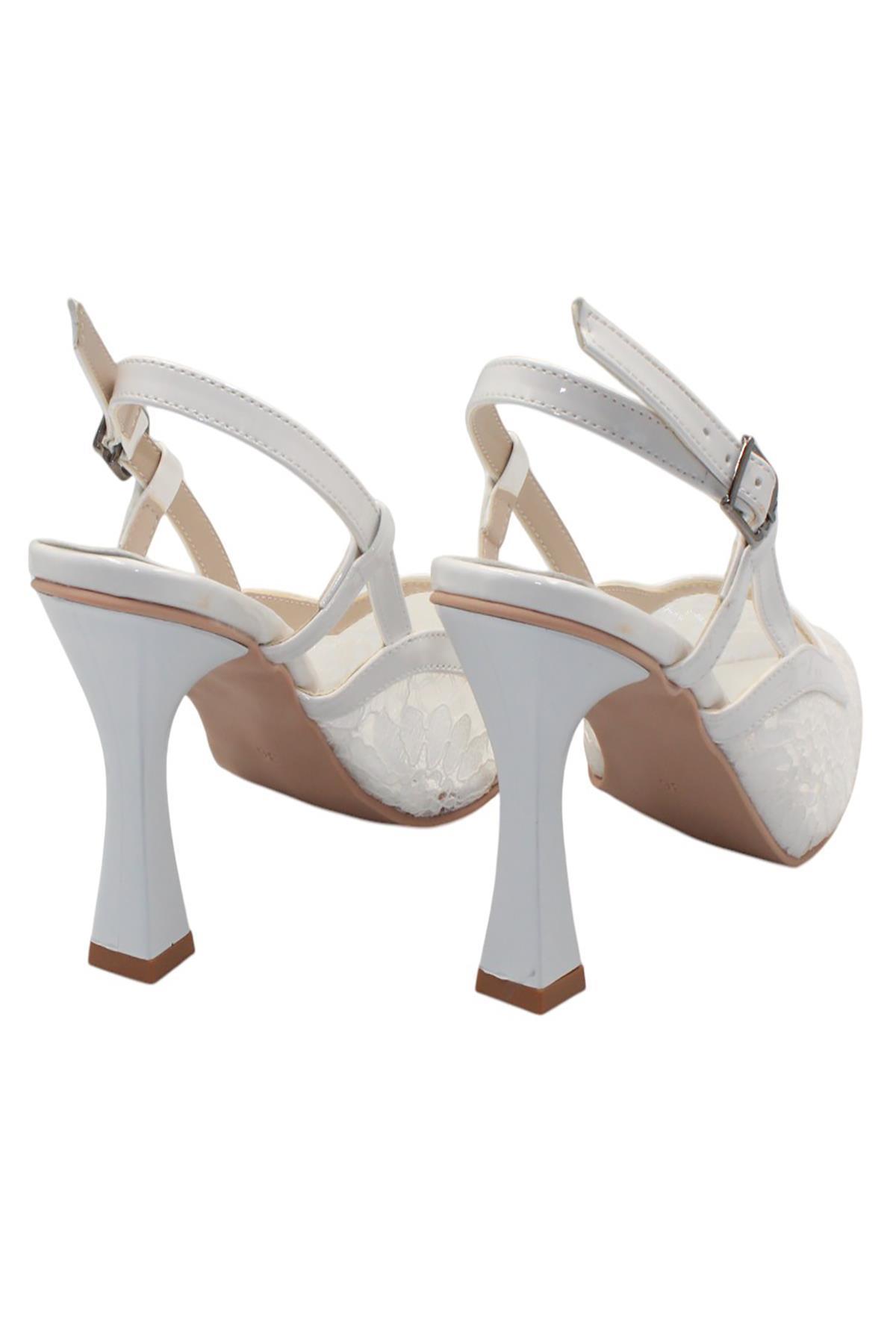 Celira Beyaz Tüllü Klasik Topuk Kadın Ayakkabı (HAS00351)