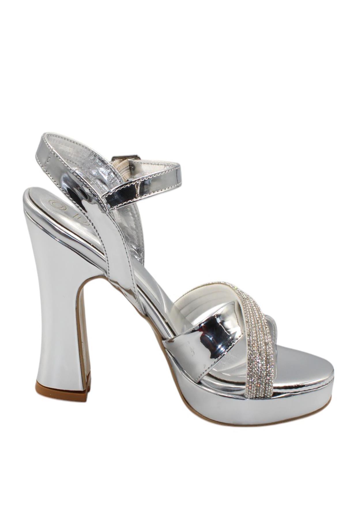 Celira Gümüş Kadıın Rugan Platform Topuklu Ayakkabı (HAS00359)