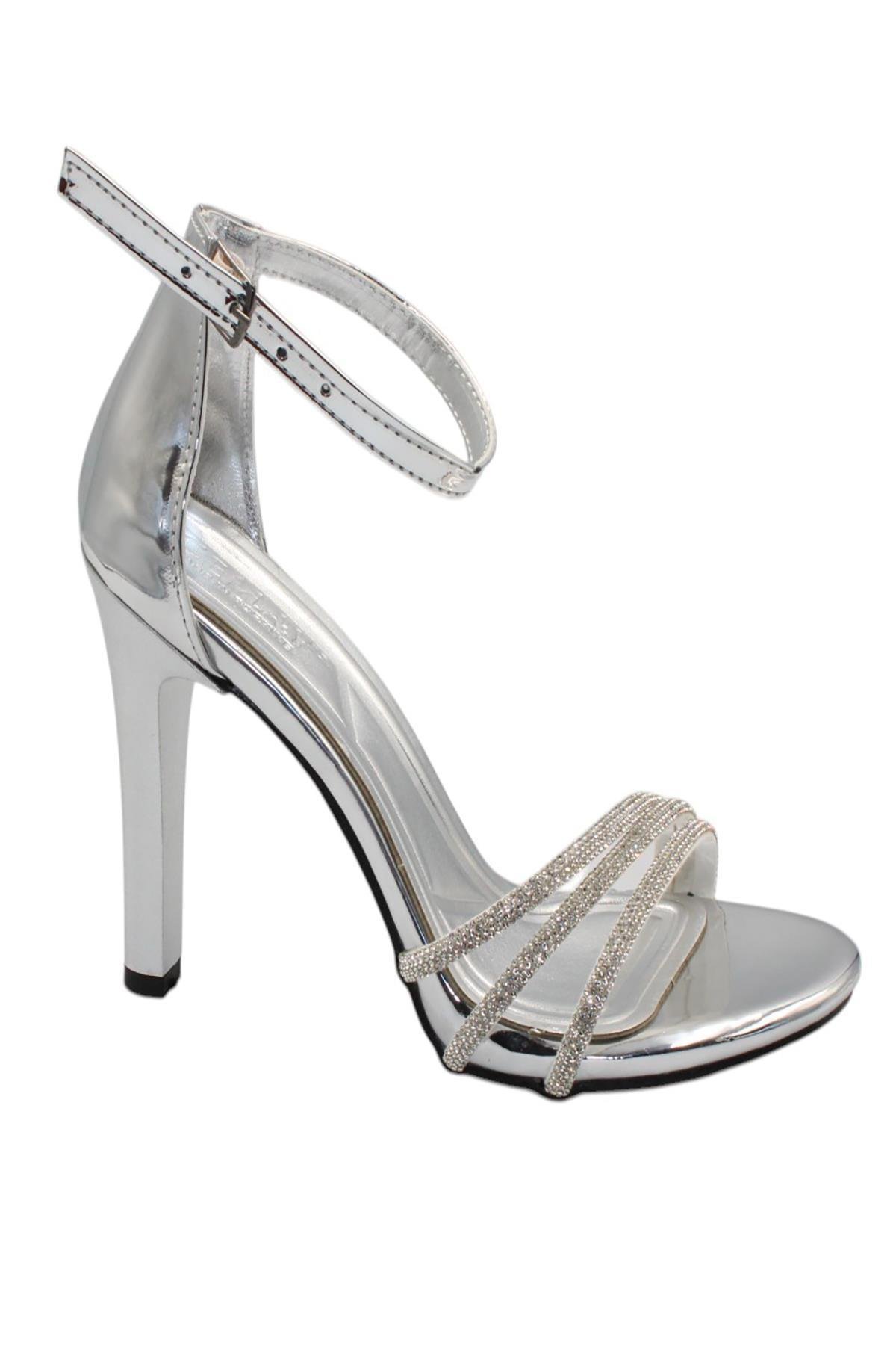 Celira Gümüş Kadın 10 Cm Bilek Kemerli Topuklu Ayakkabı (HAS00341)