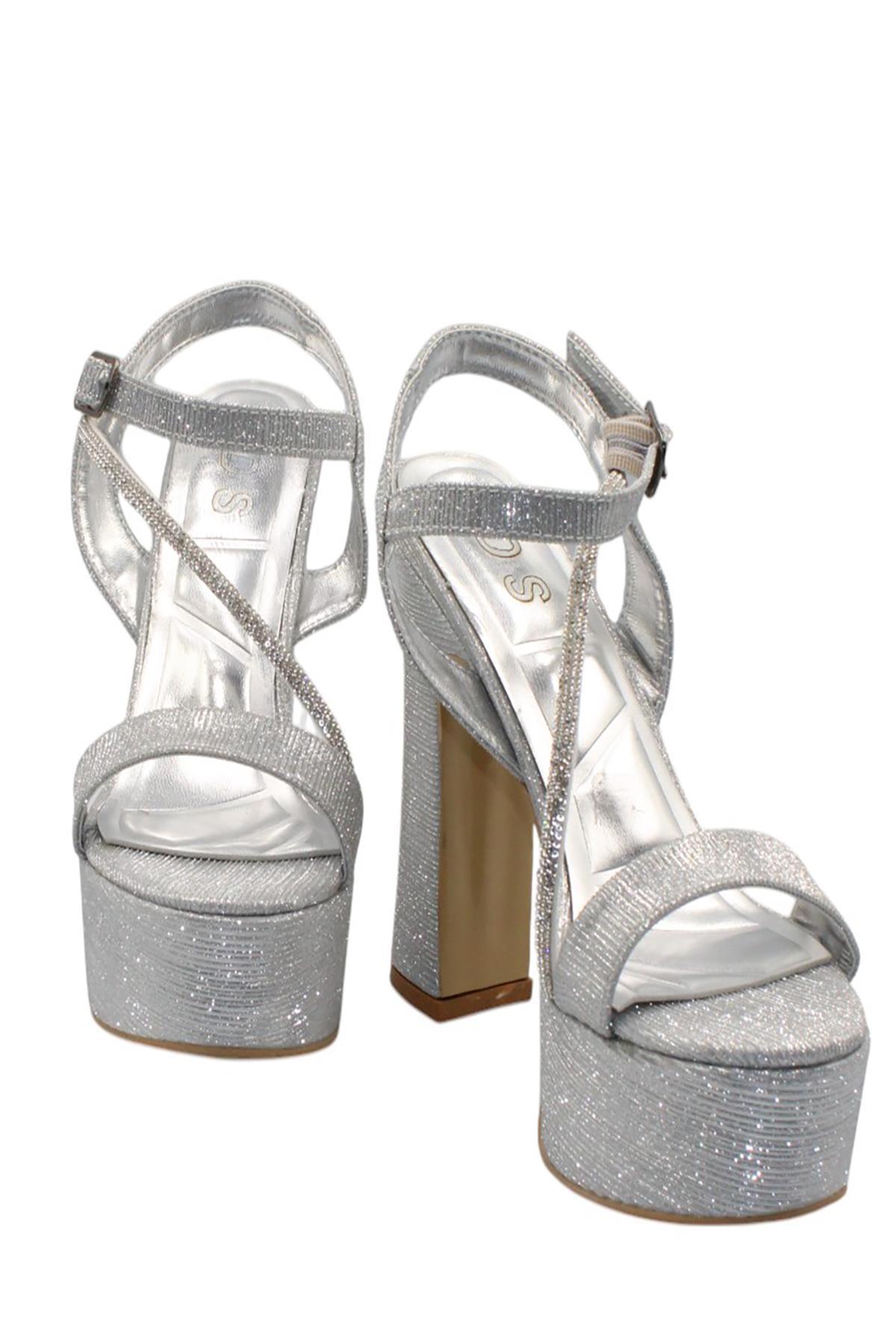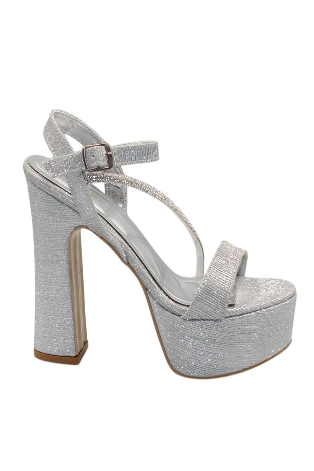 Celira Gümüş Kadın Çizgili Platform Topuklu Ayakkabı (HAS00361)