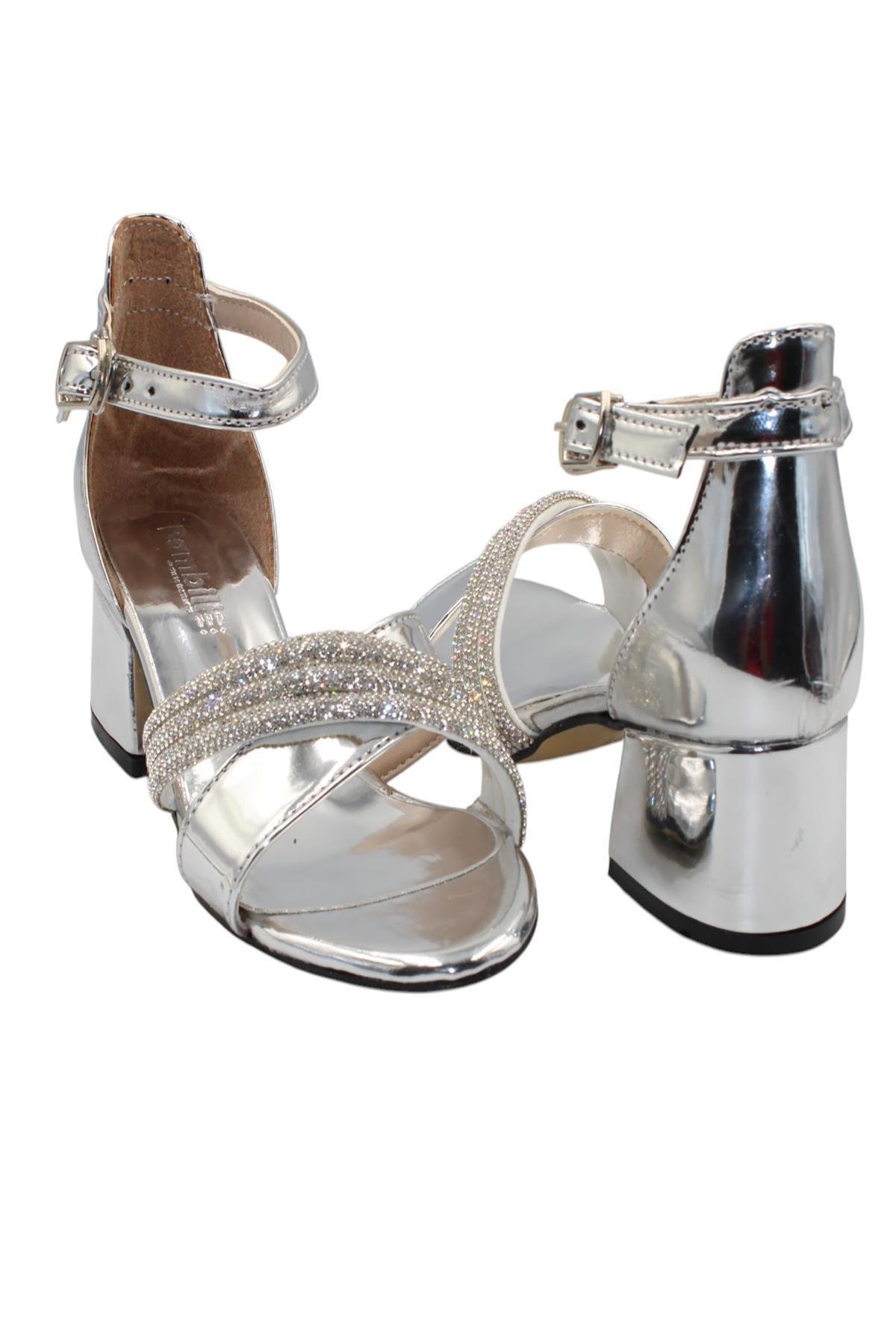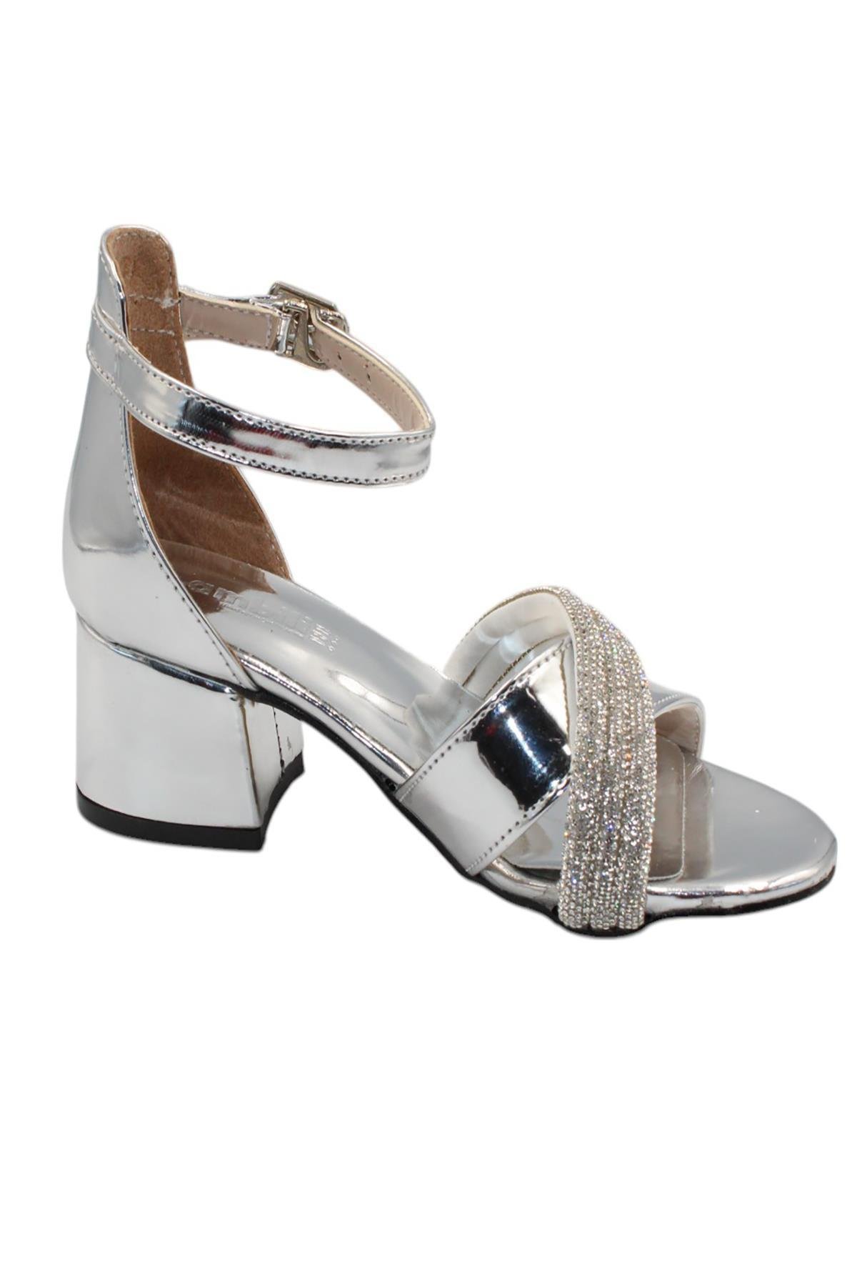 Celira Gümüş Rugan Kız Çocuk Topuklu Sandalet Ayakkabı (HAS00325)