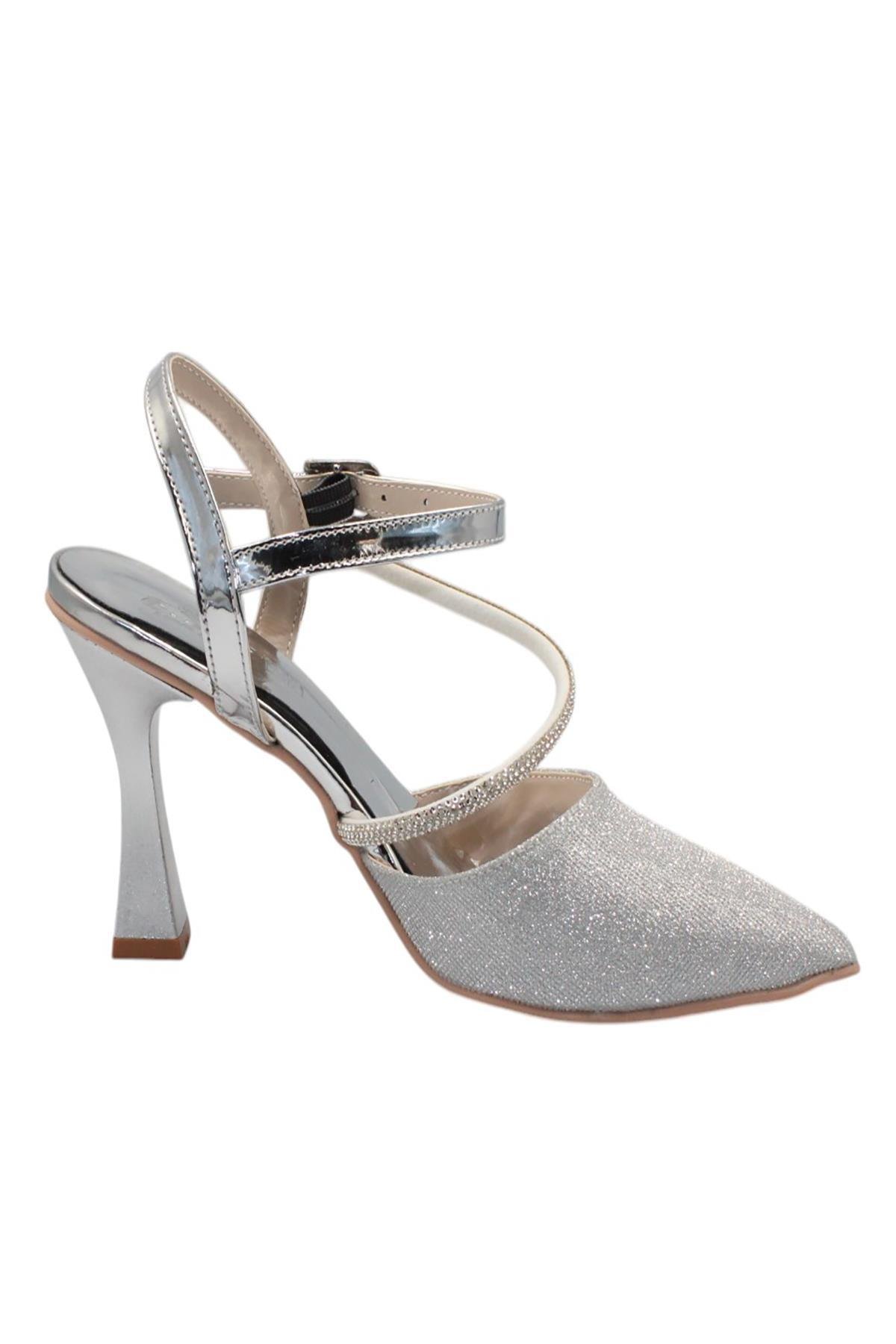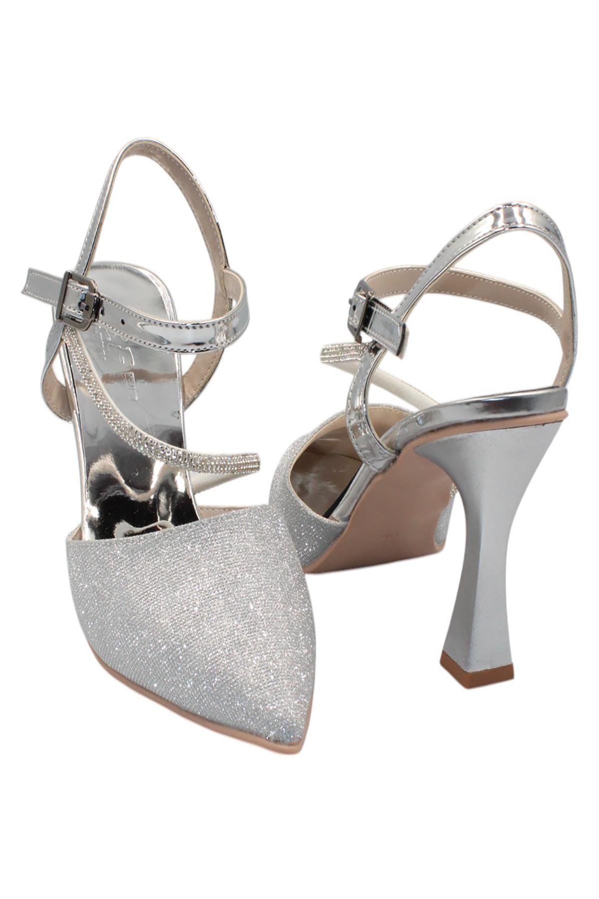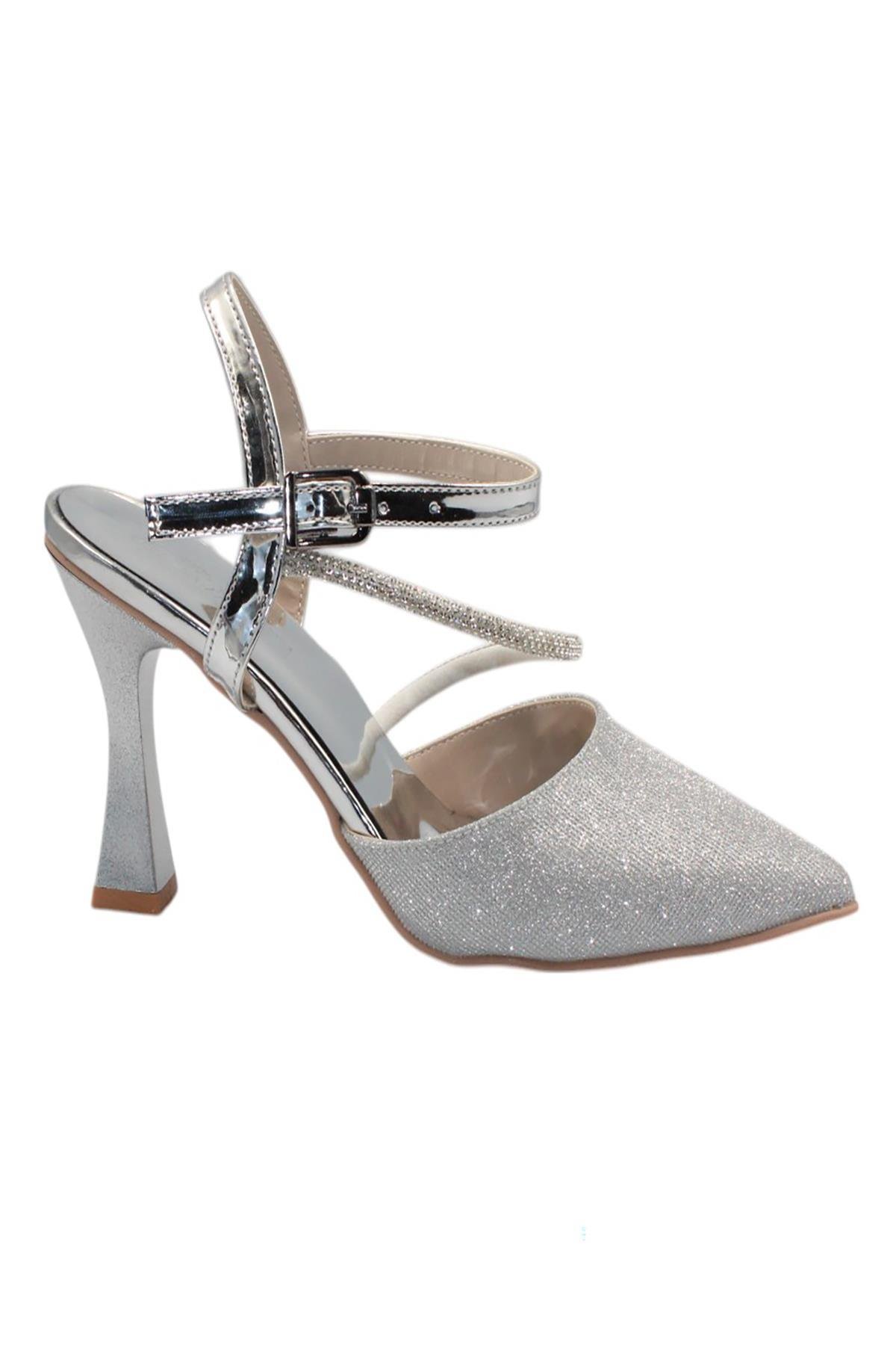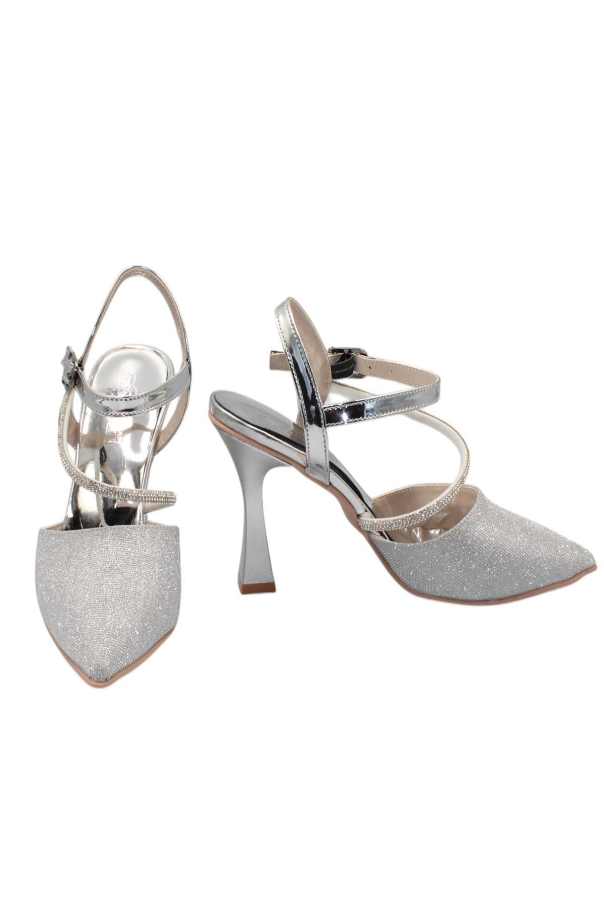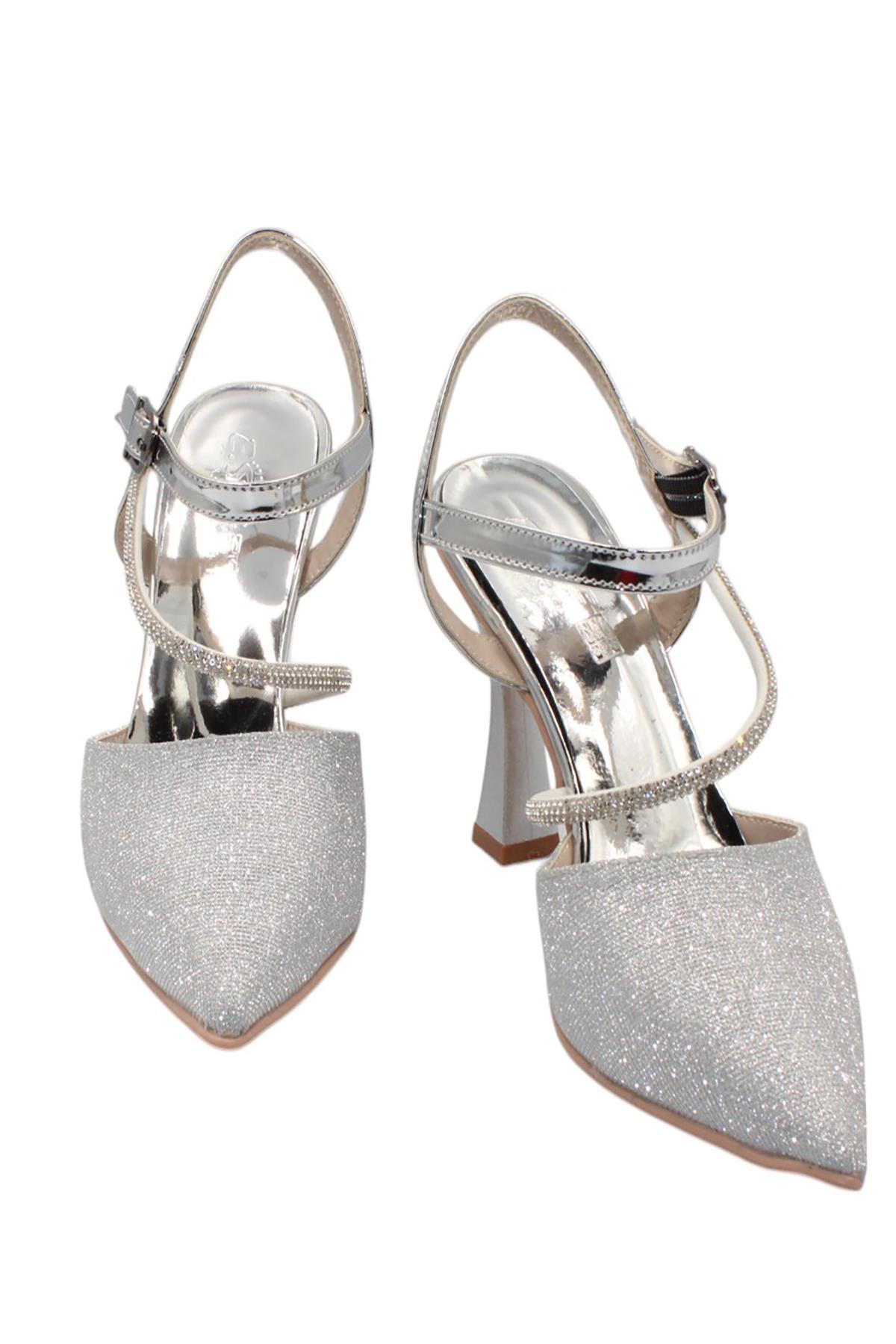 Celira Gümüş Taşlı Simli Klasik Topuk Kadın Ayakkabı (HAS00356)