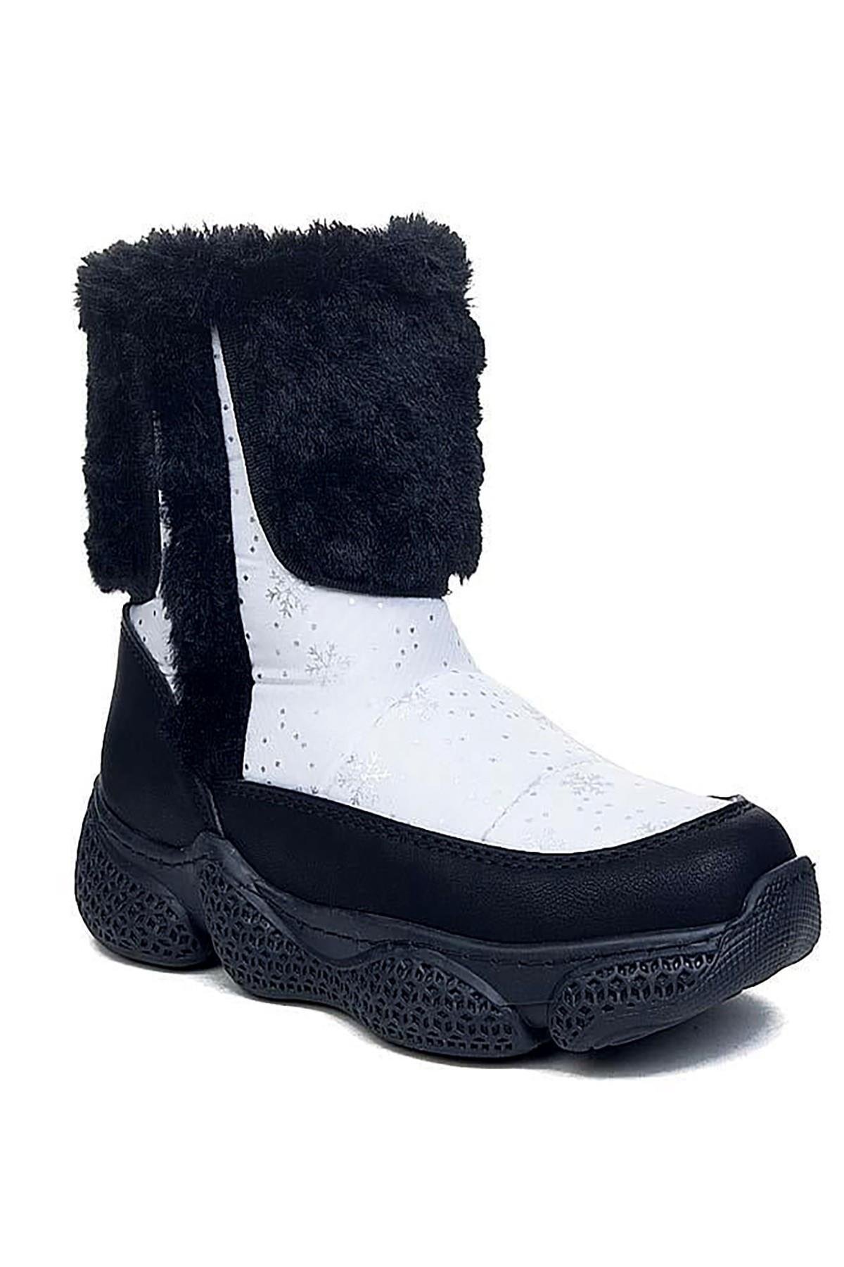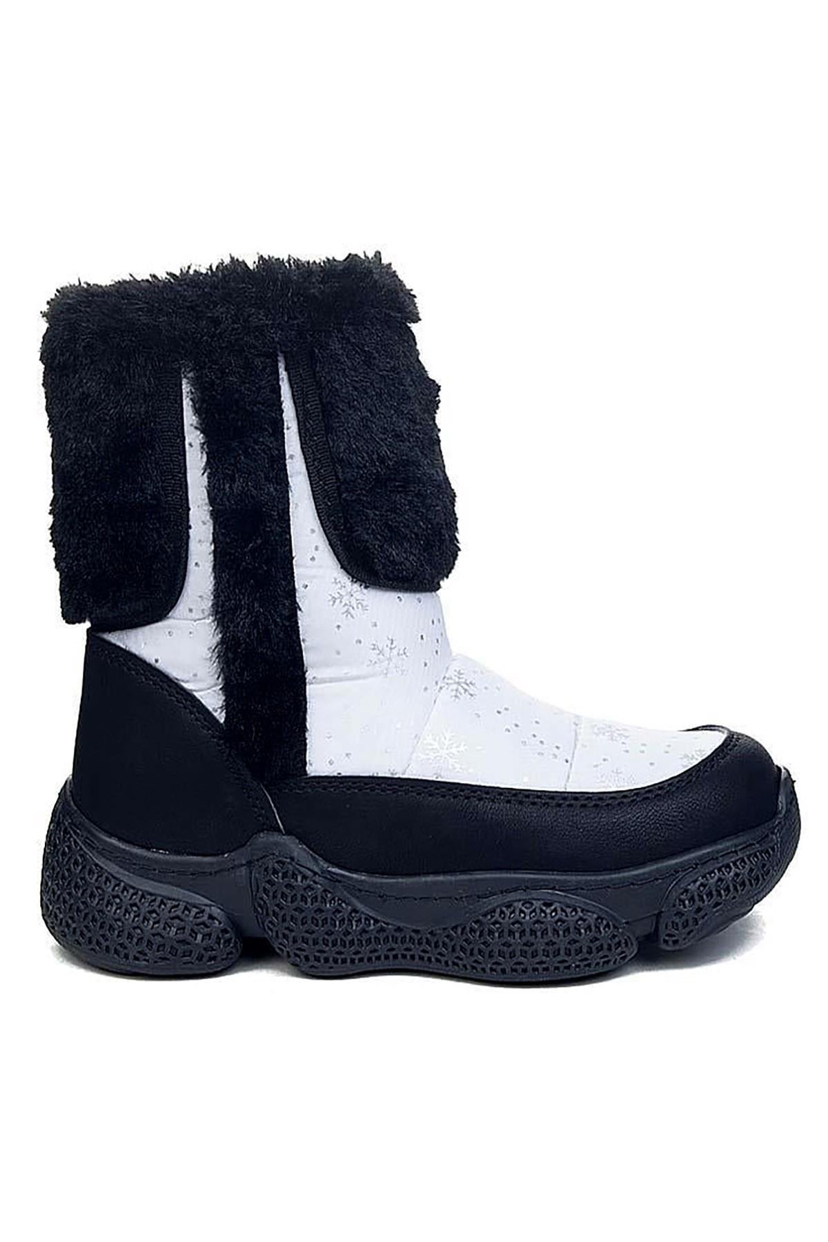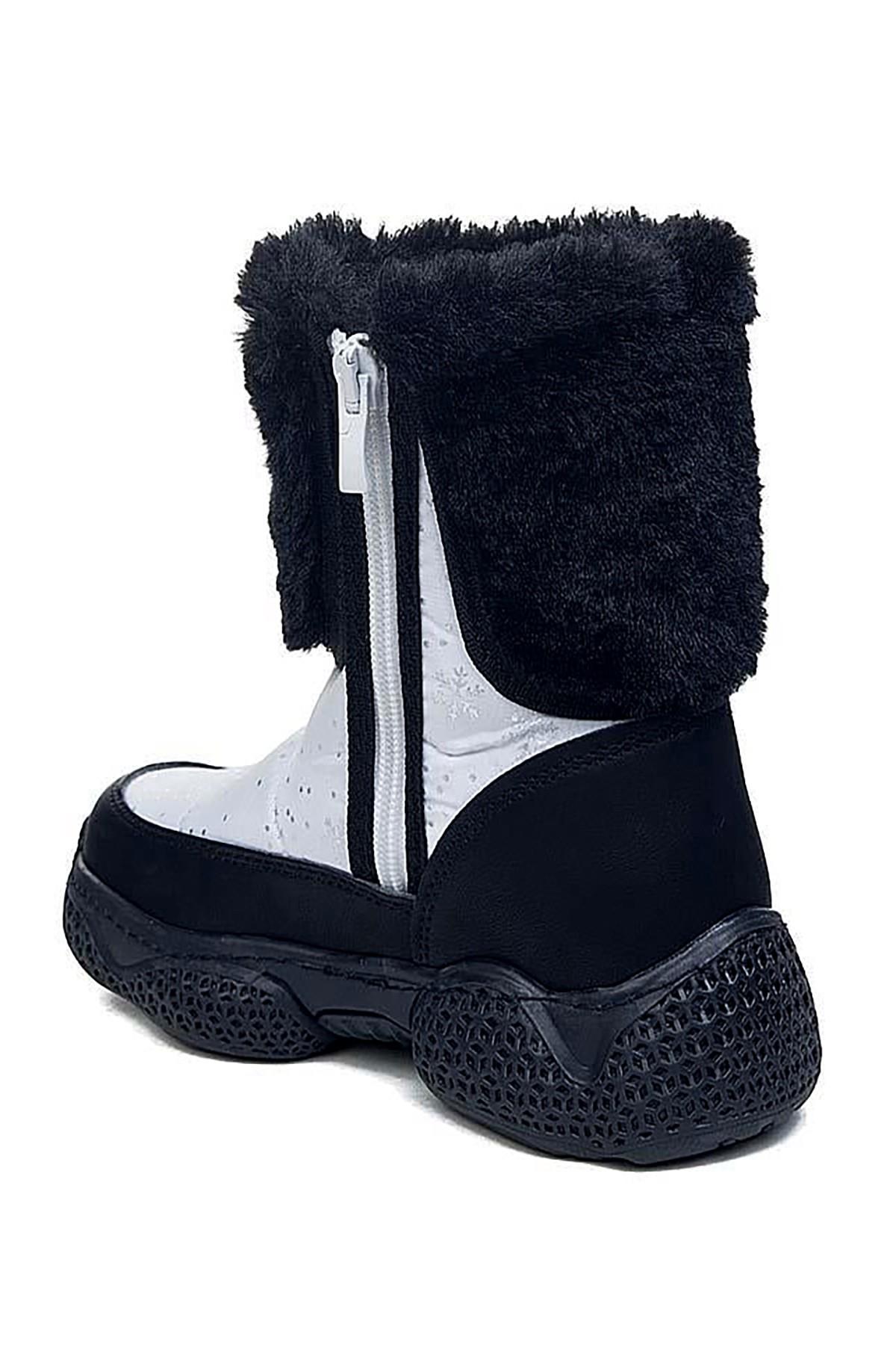Celira Ltt Beyaz Siyah Fermuarlı Kız Çocuk Kar Botu (CLRA00612)