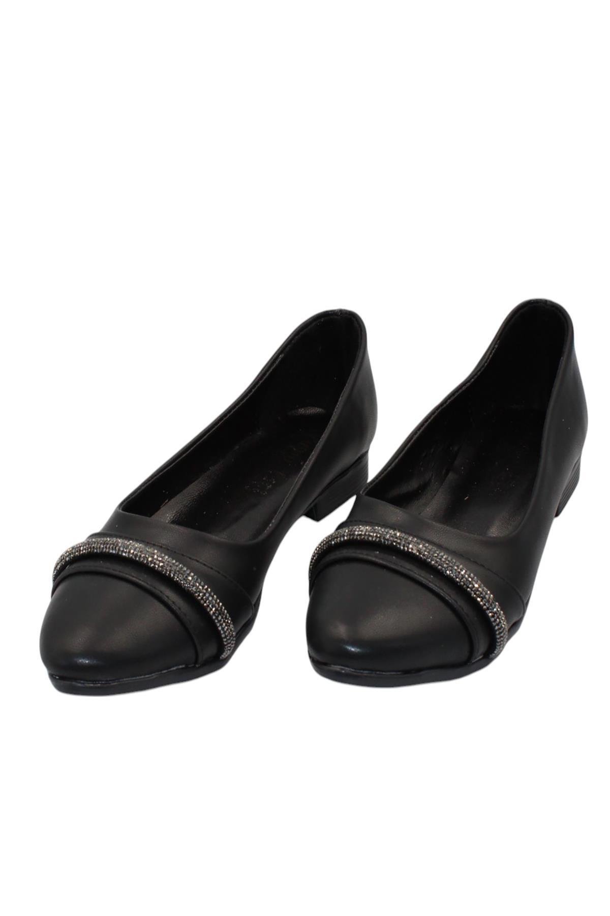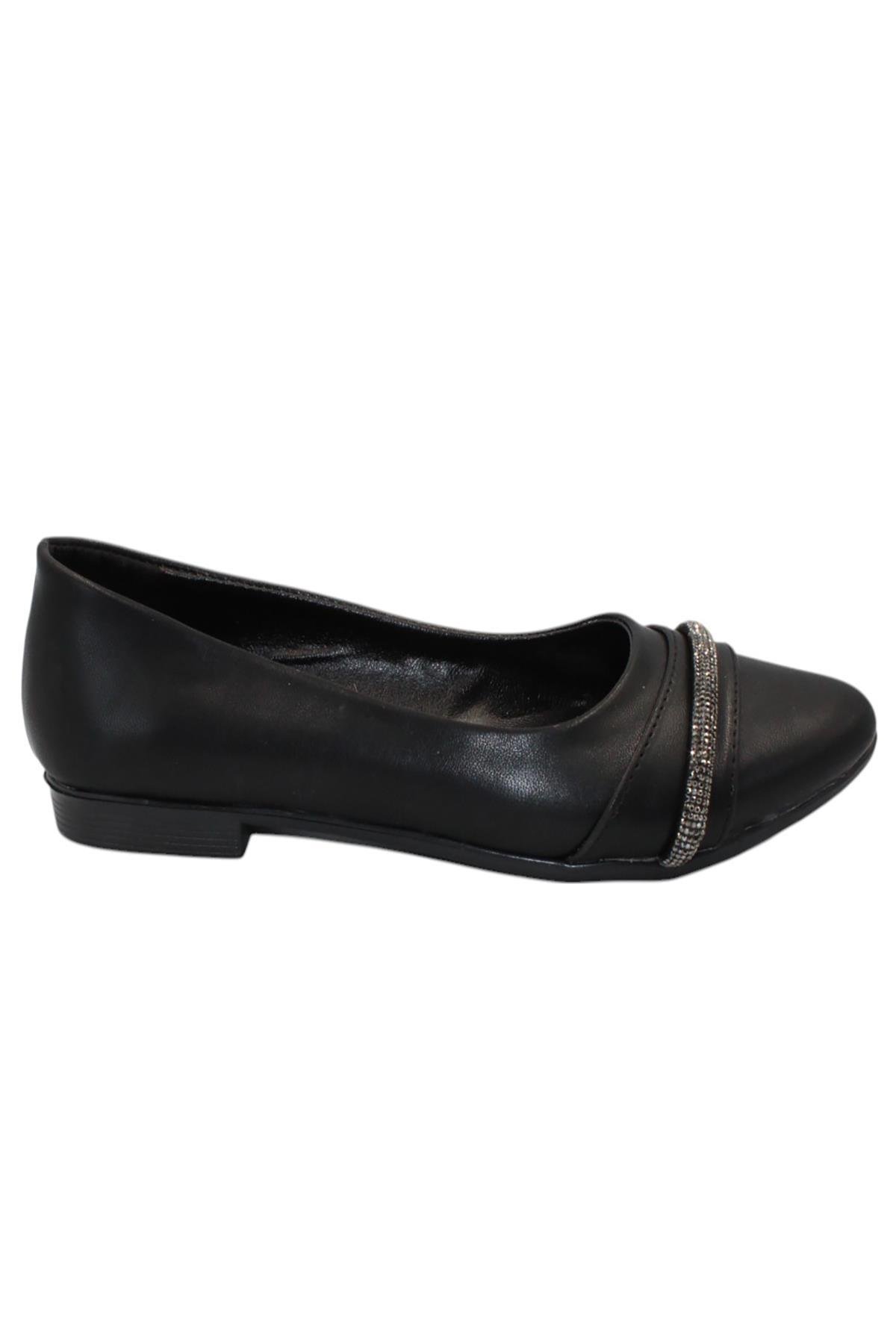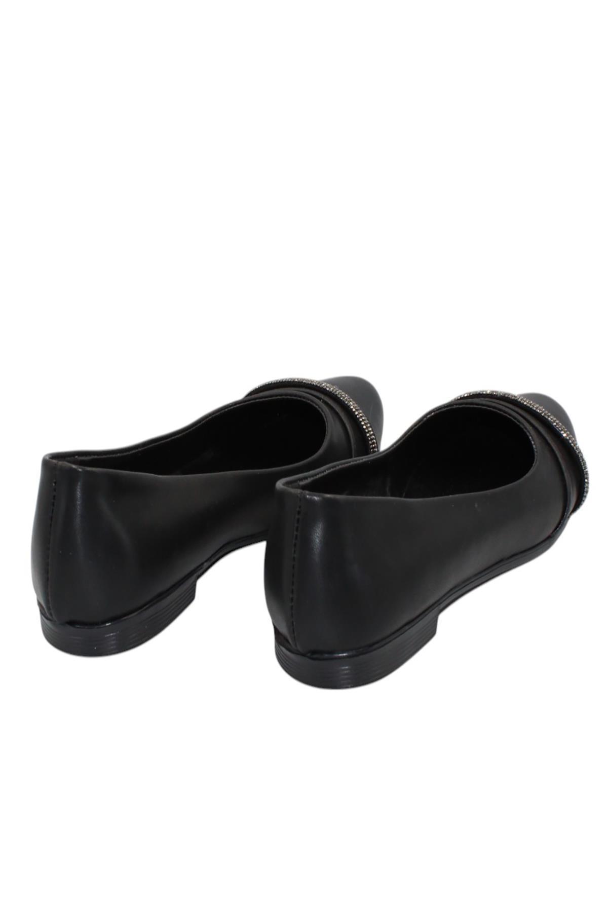 Celira Siyah Cilt Taşlı Günlük Babet Ayakkabı (HAS00370)