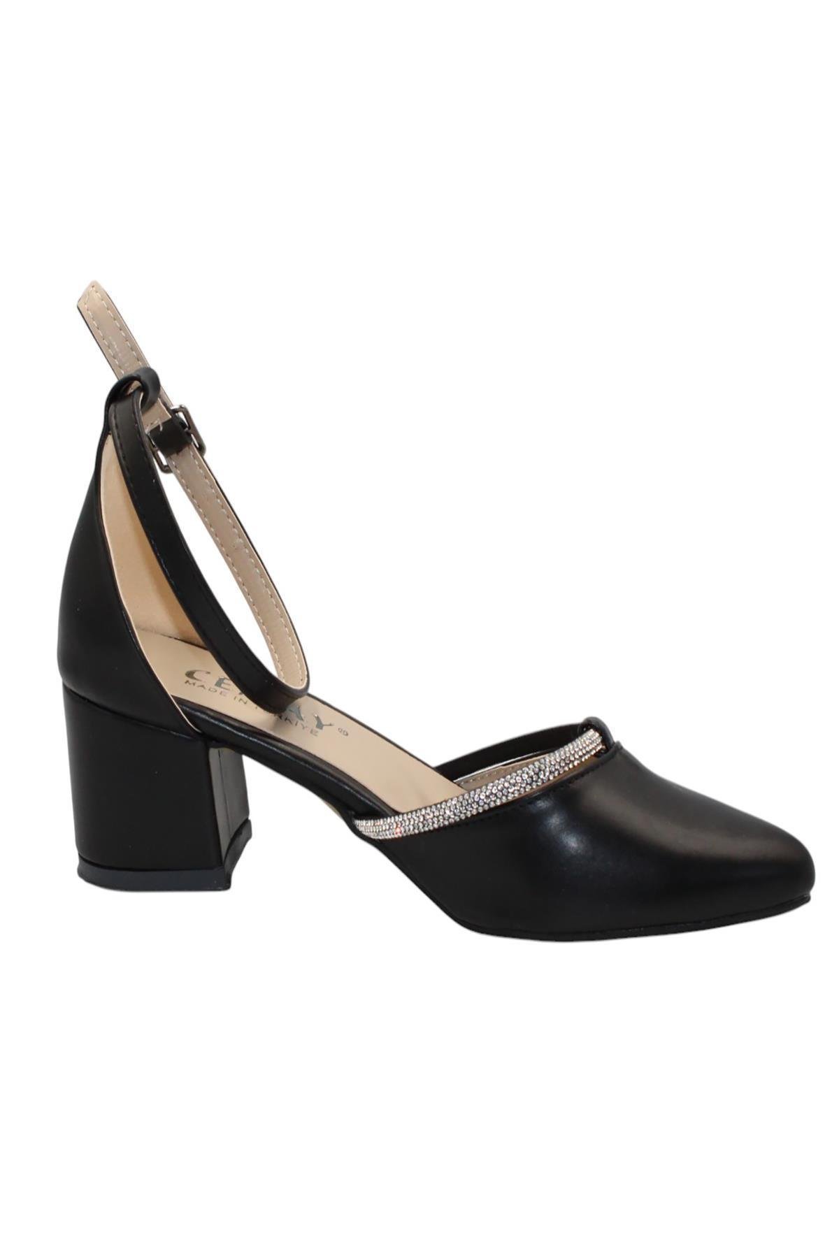 Celira Siyah Kadın 5 Cm Kalın Topuklu Ayakkabı (HAS00338)