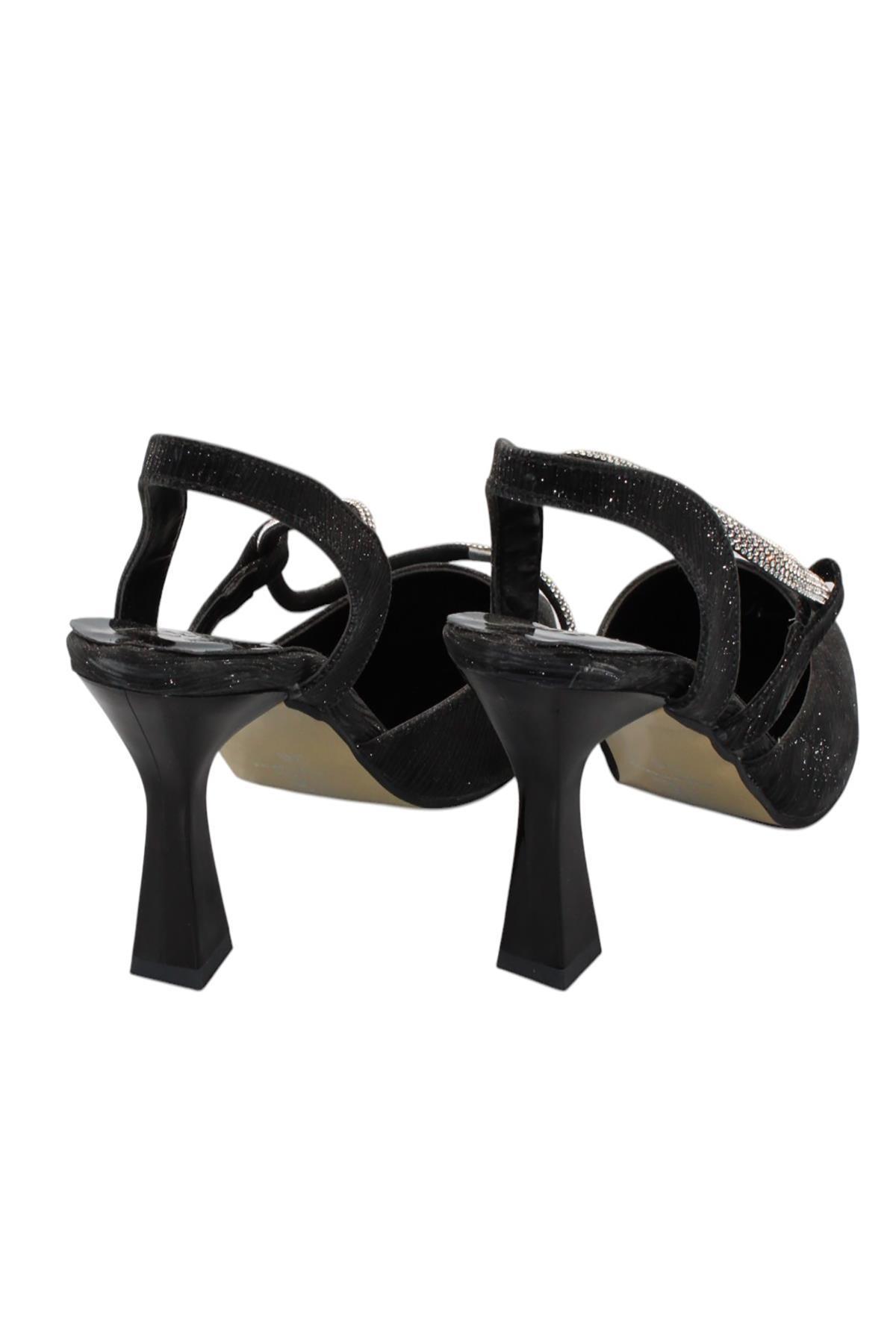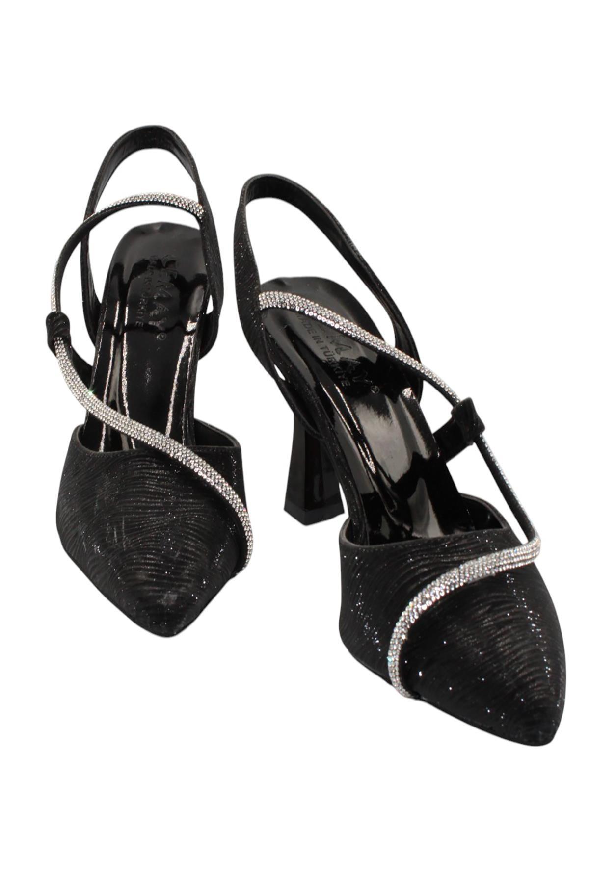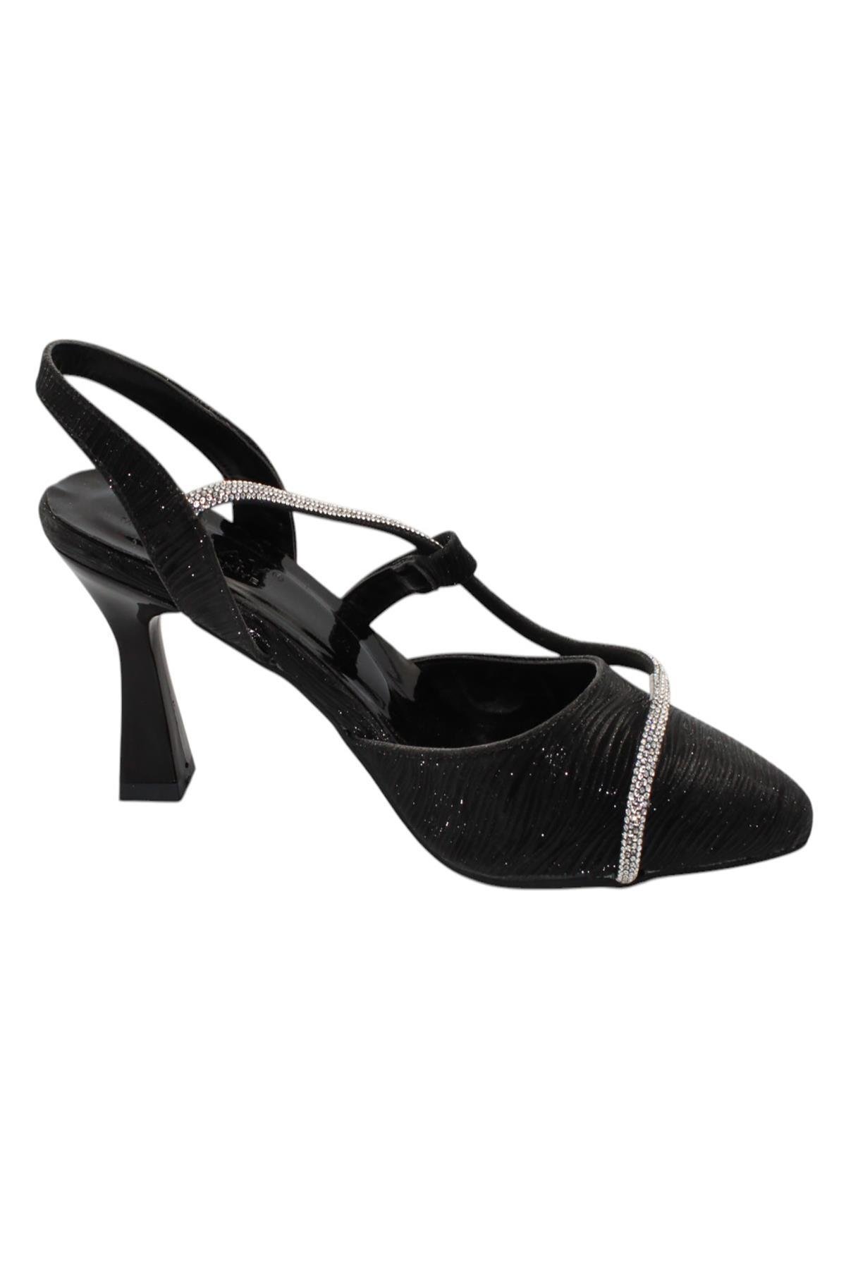 Celira Siyah Kadın 8 Cm Taşlı Biyeli Topuklu Ayakkabı (HAS00333)