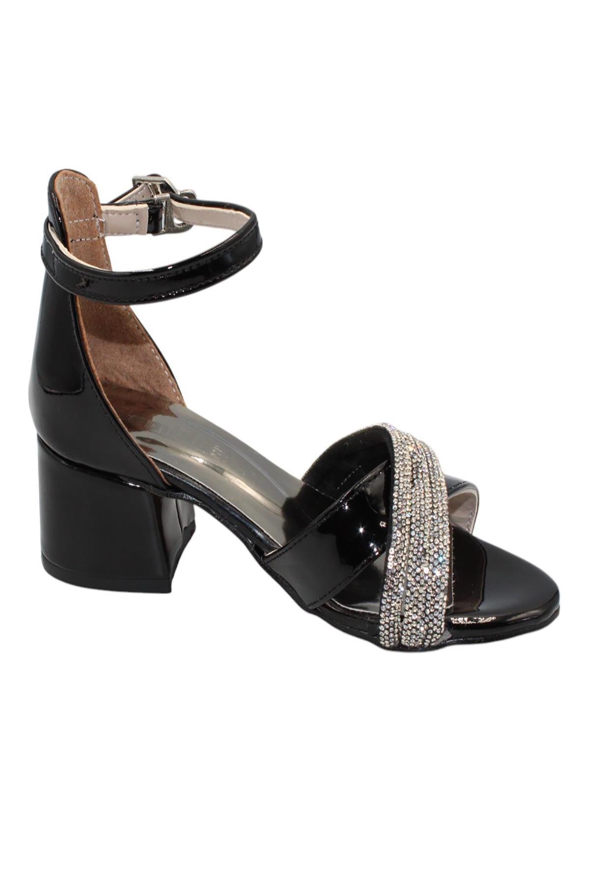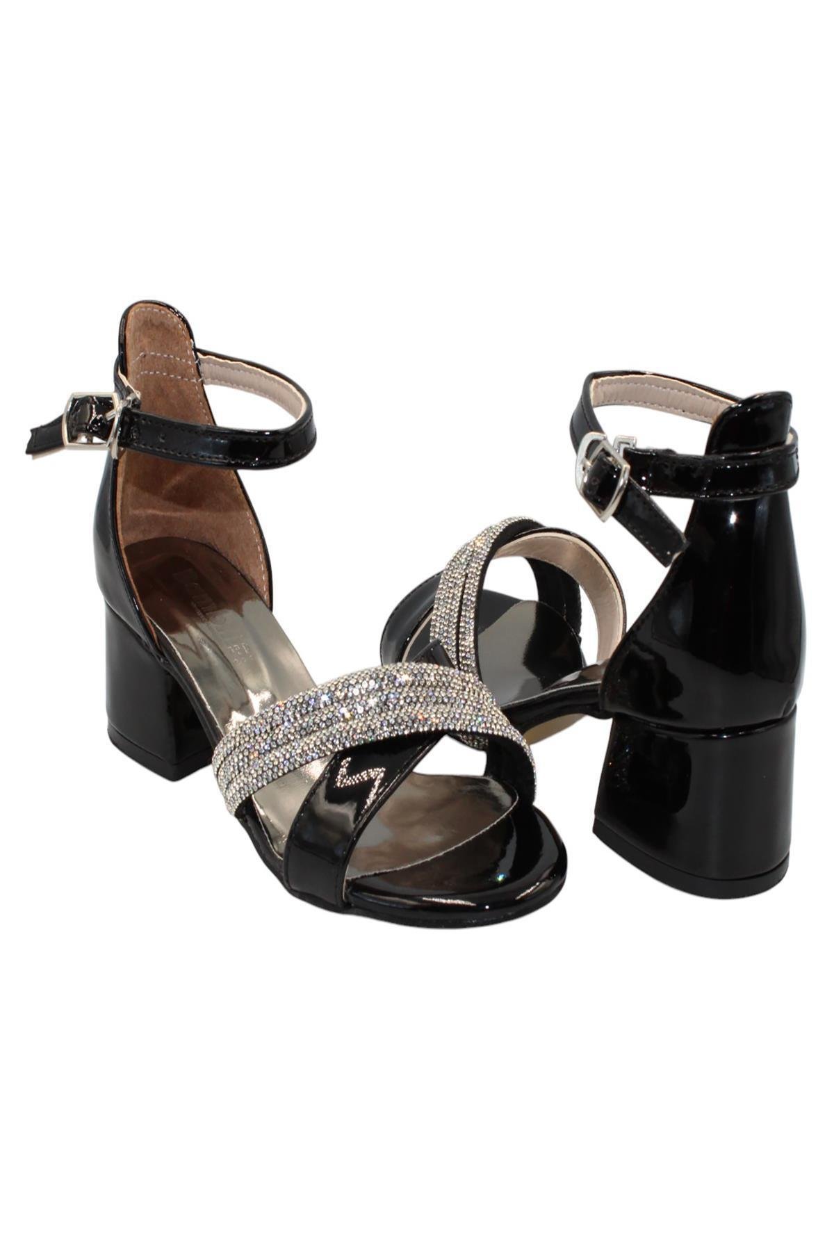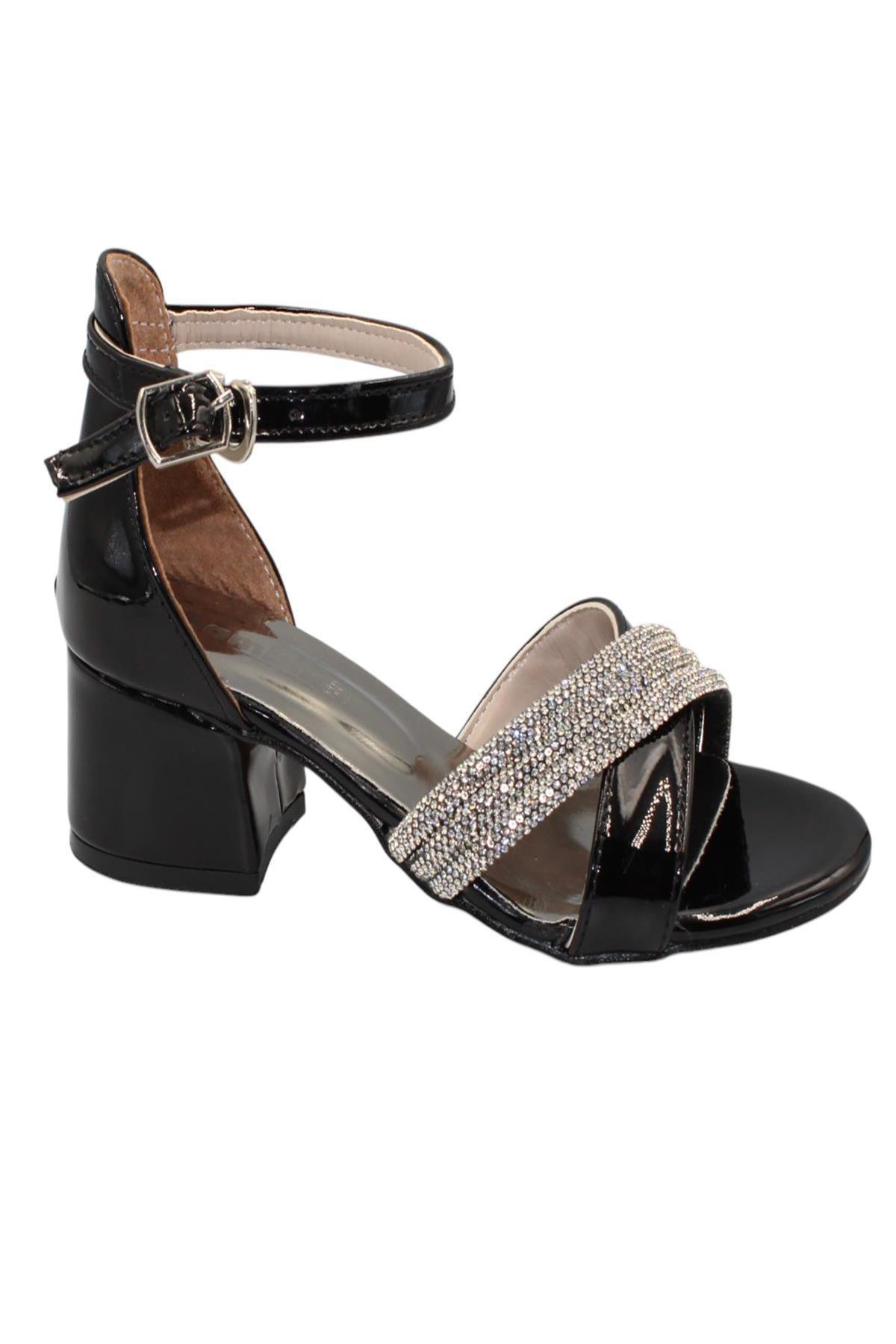 Celira Siyah Rugan Kız Çocuk Topuklu Sandalet Ayakkabı (HAS00323)