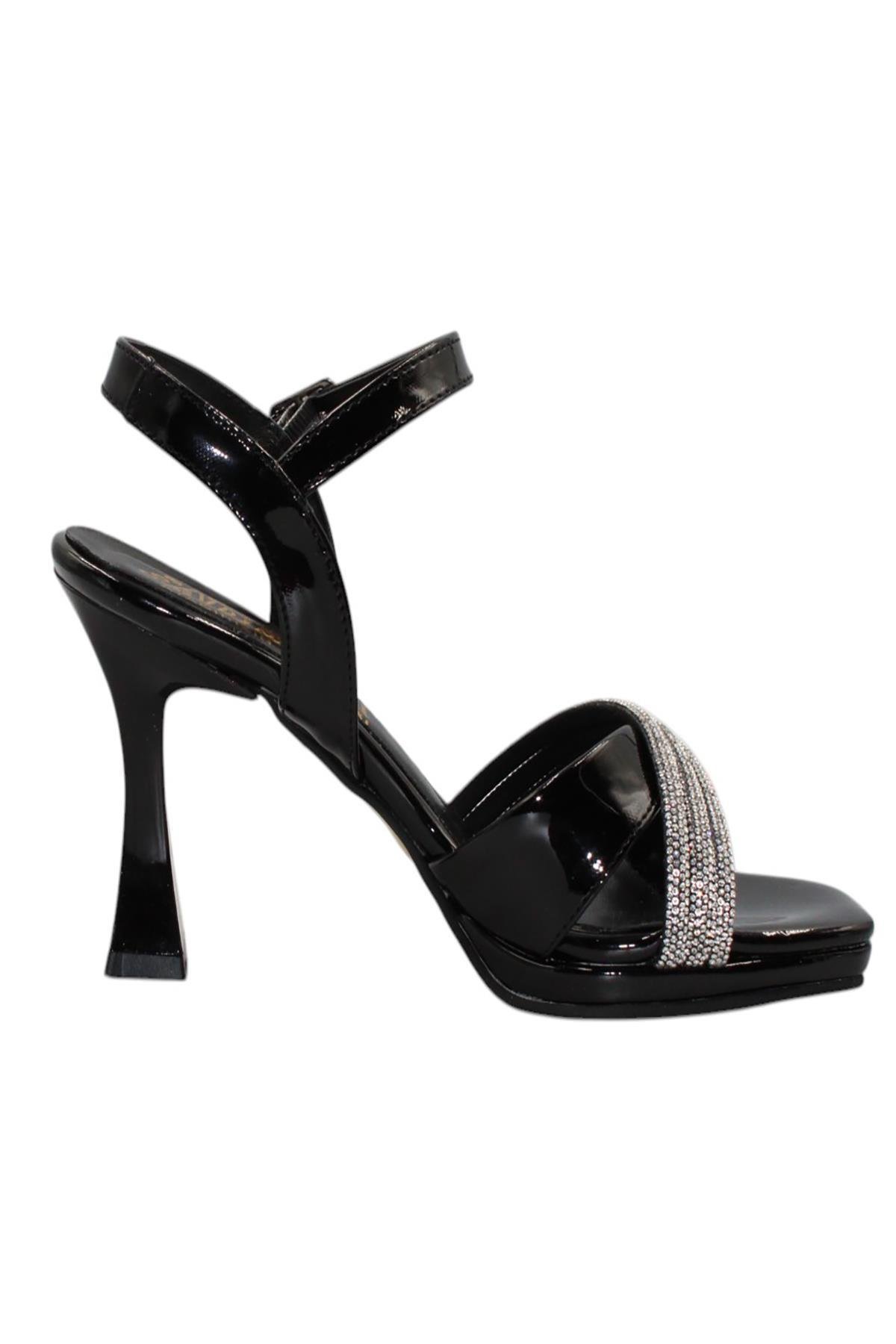 Celira Siyah Rugan Taşlı Klasik Topuk Kadın Ayakkabı (HAS00349)