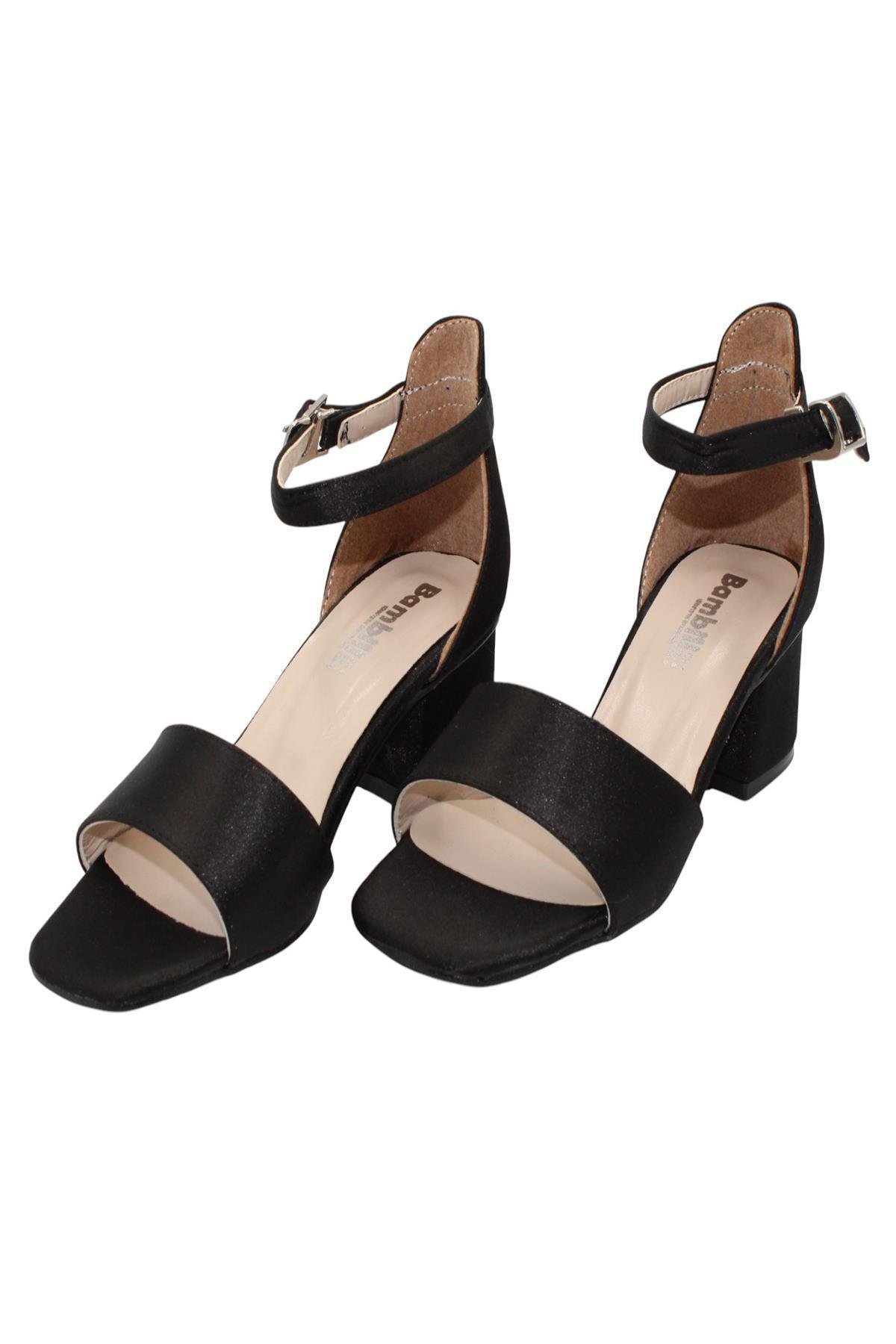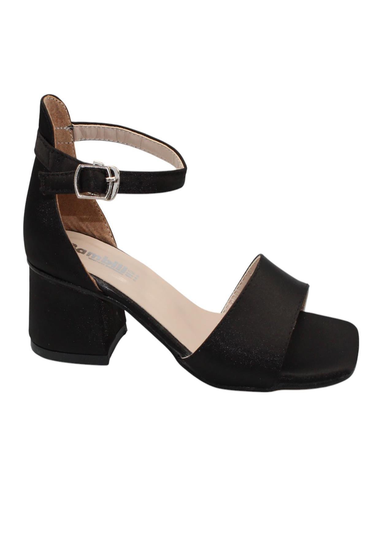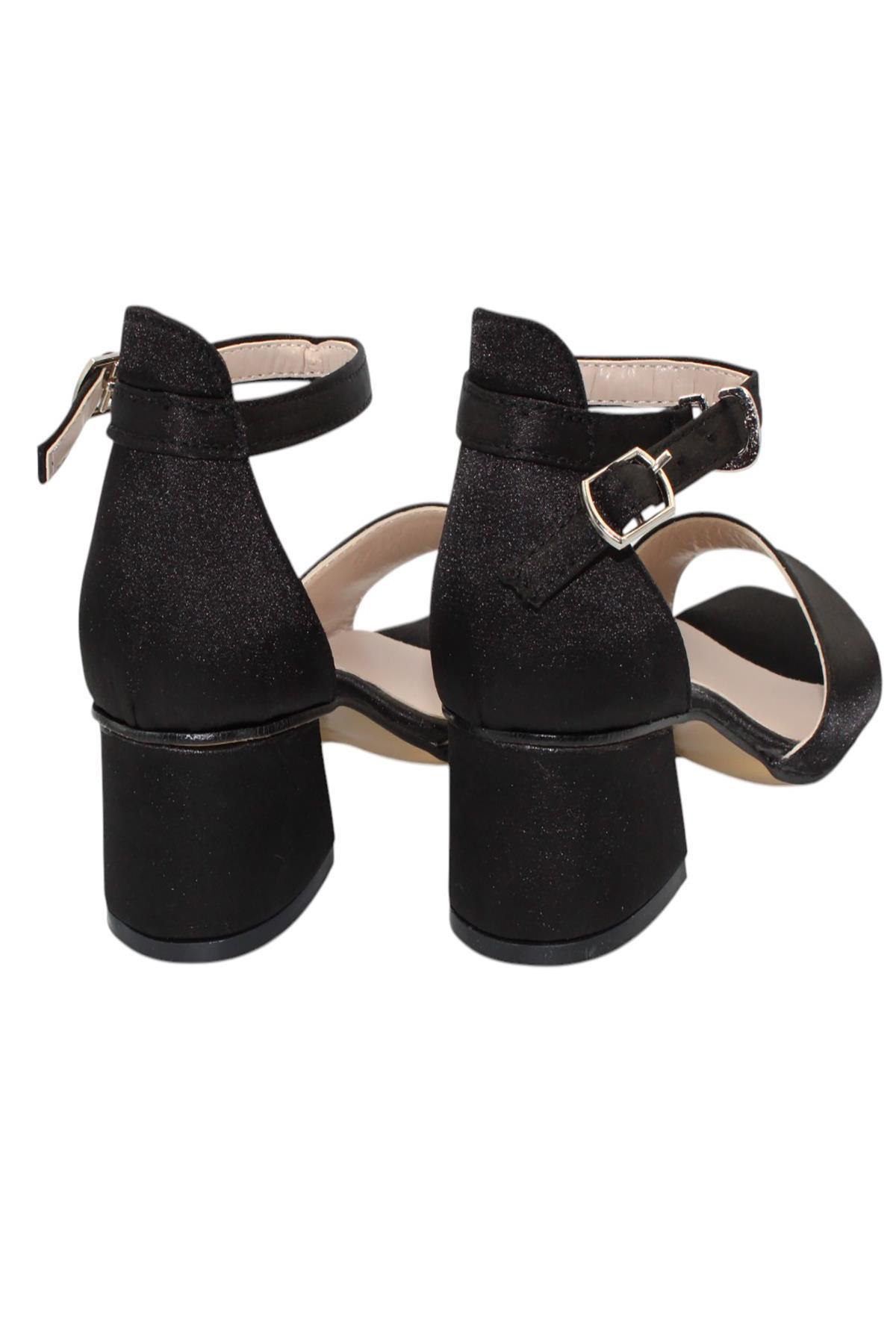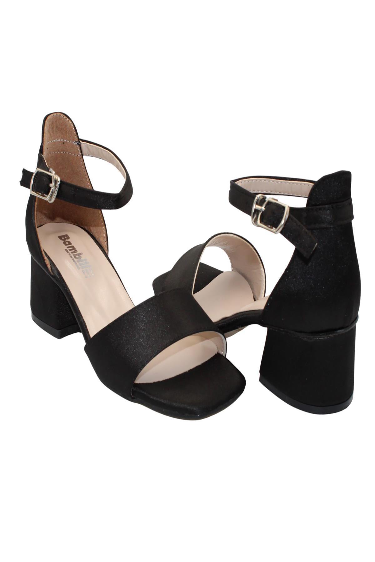 Celira Siyah Saten Kız Çocuk Topuklu Sandalet Ayakkabı (HAS00324)