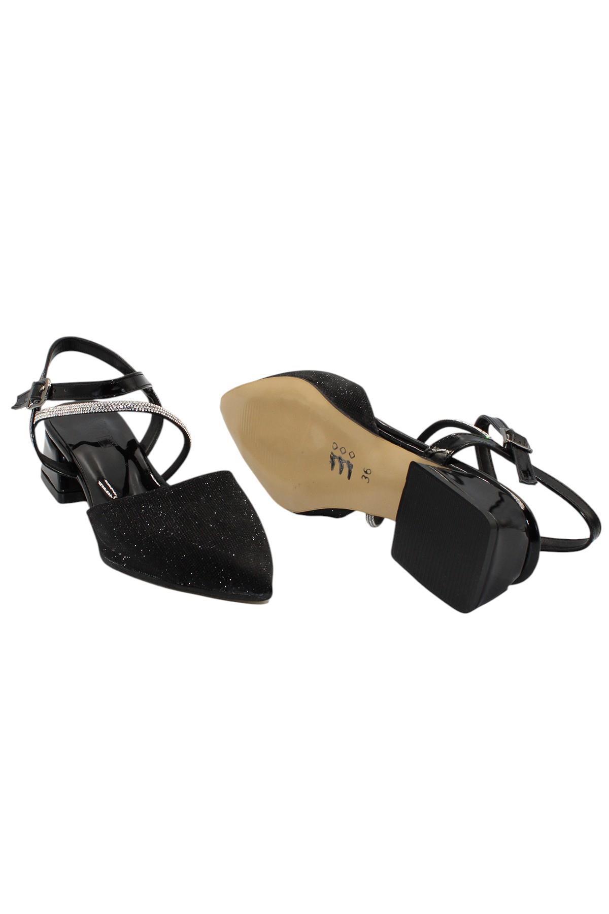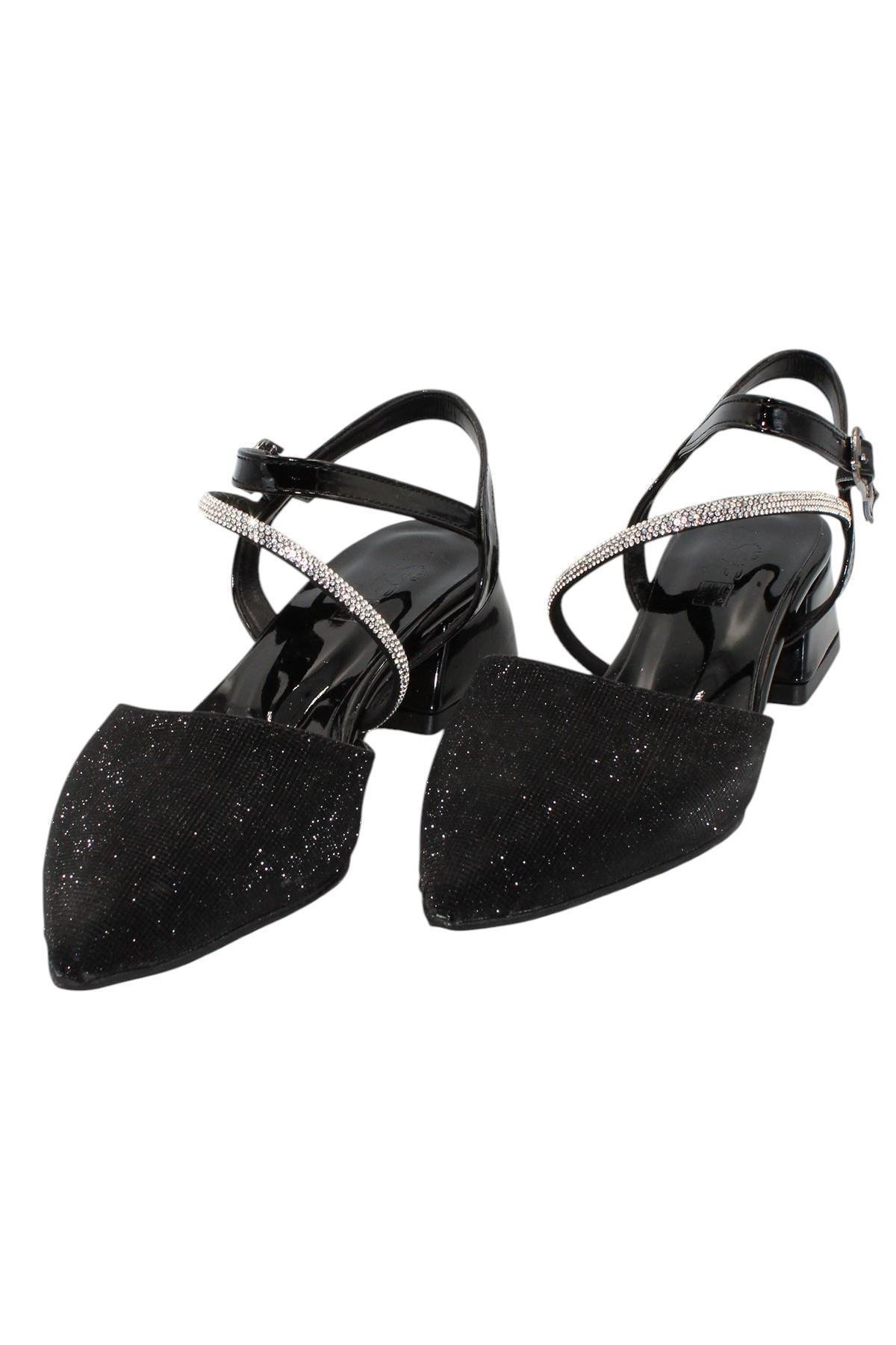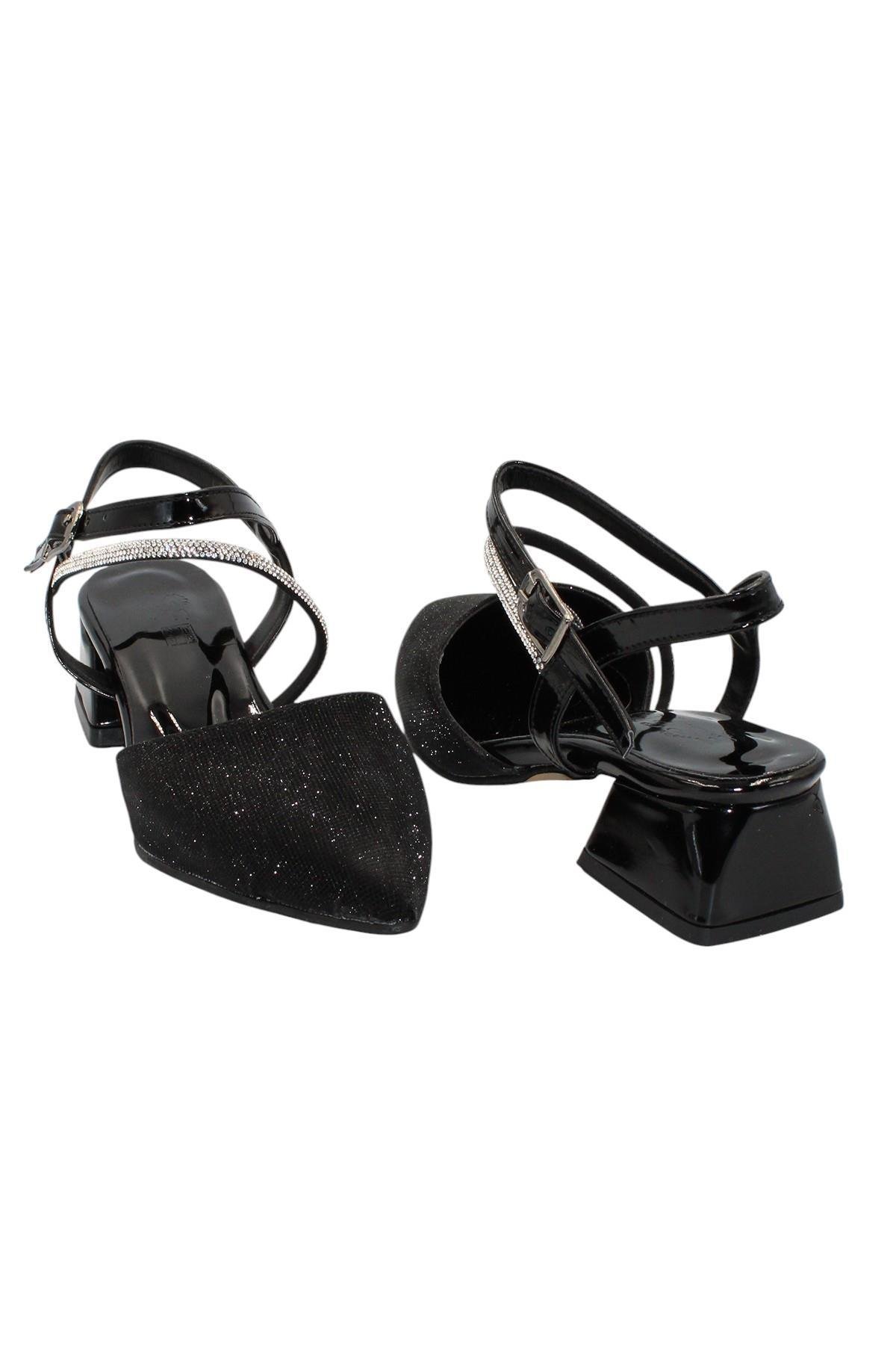 Celira Siyah Taşlı Kısa Topuk Kadın Ayakkabı (HAS00383)
