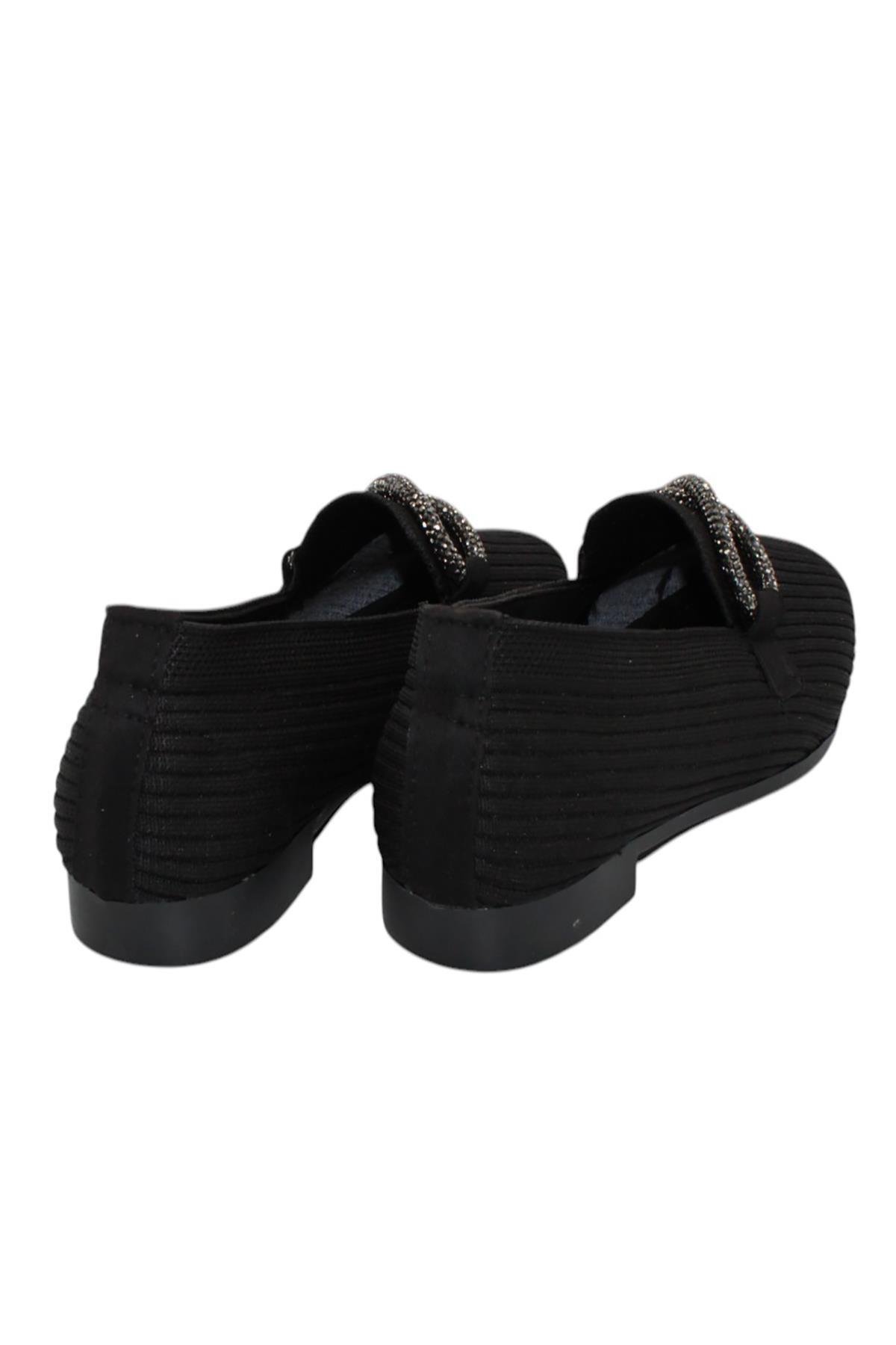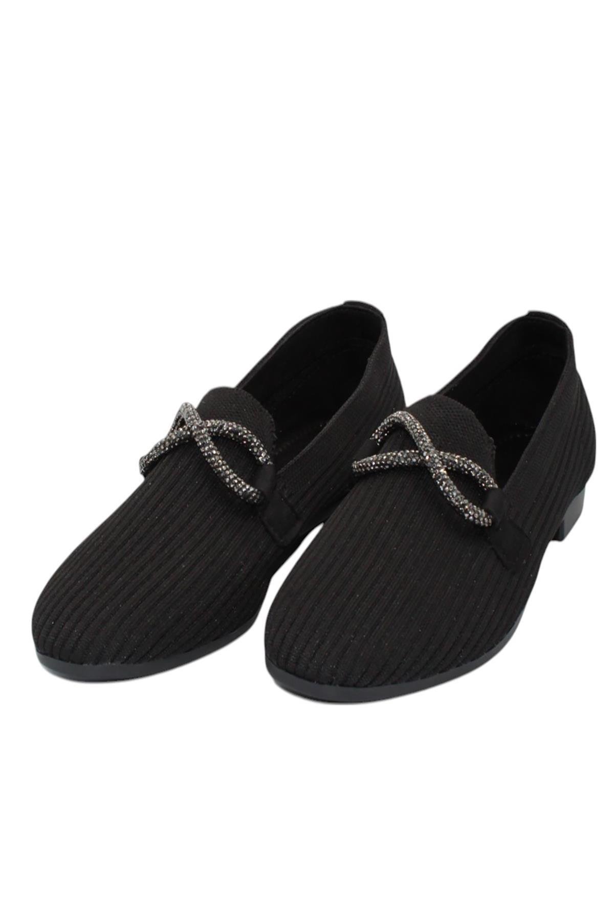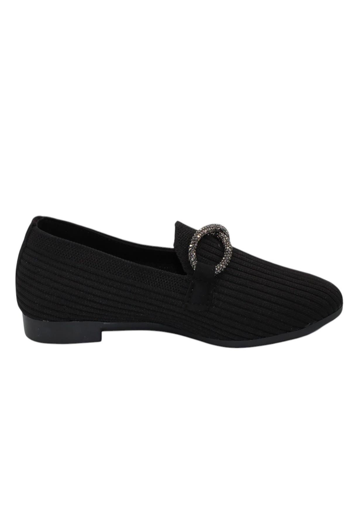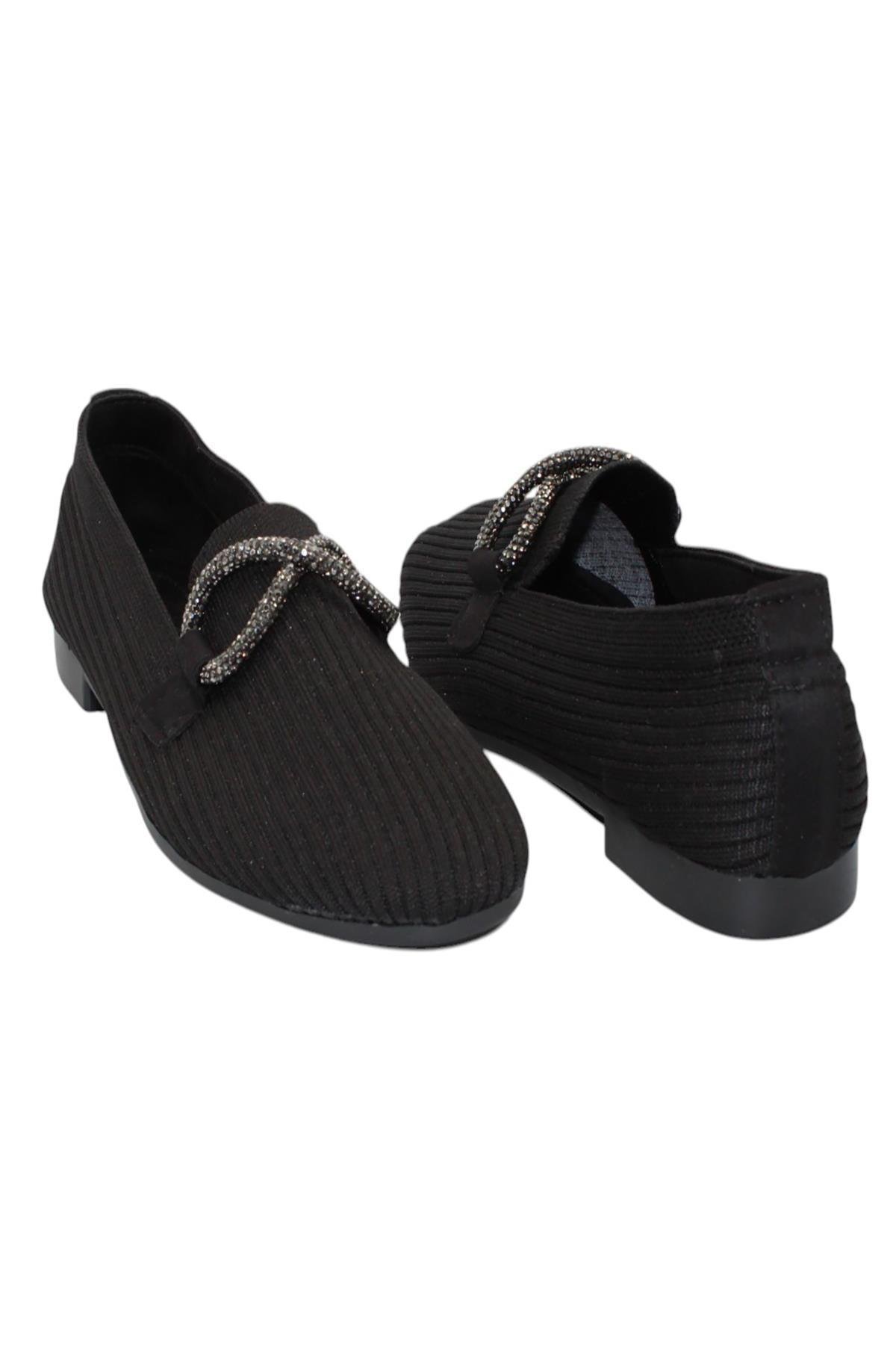 Celira Siyah Triko Taşlı Kadın Topuklu Babet Ayakkabı (HAS00368)