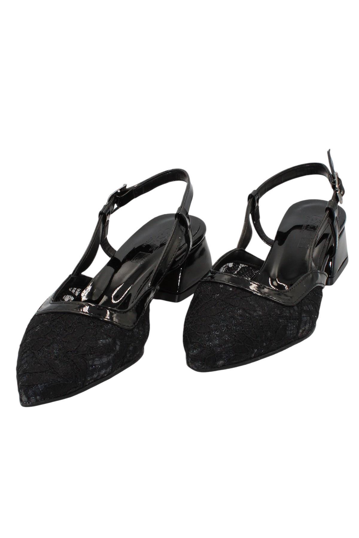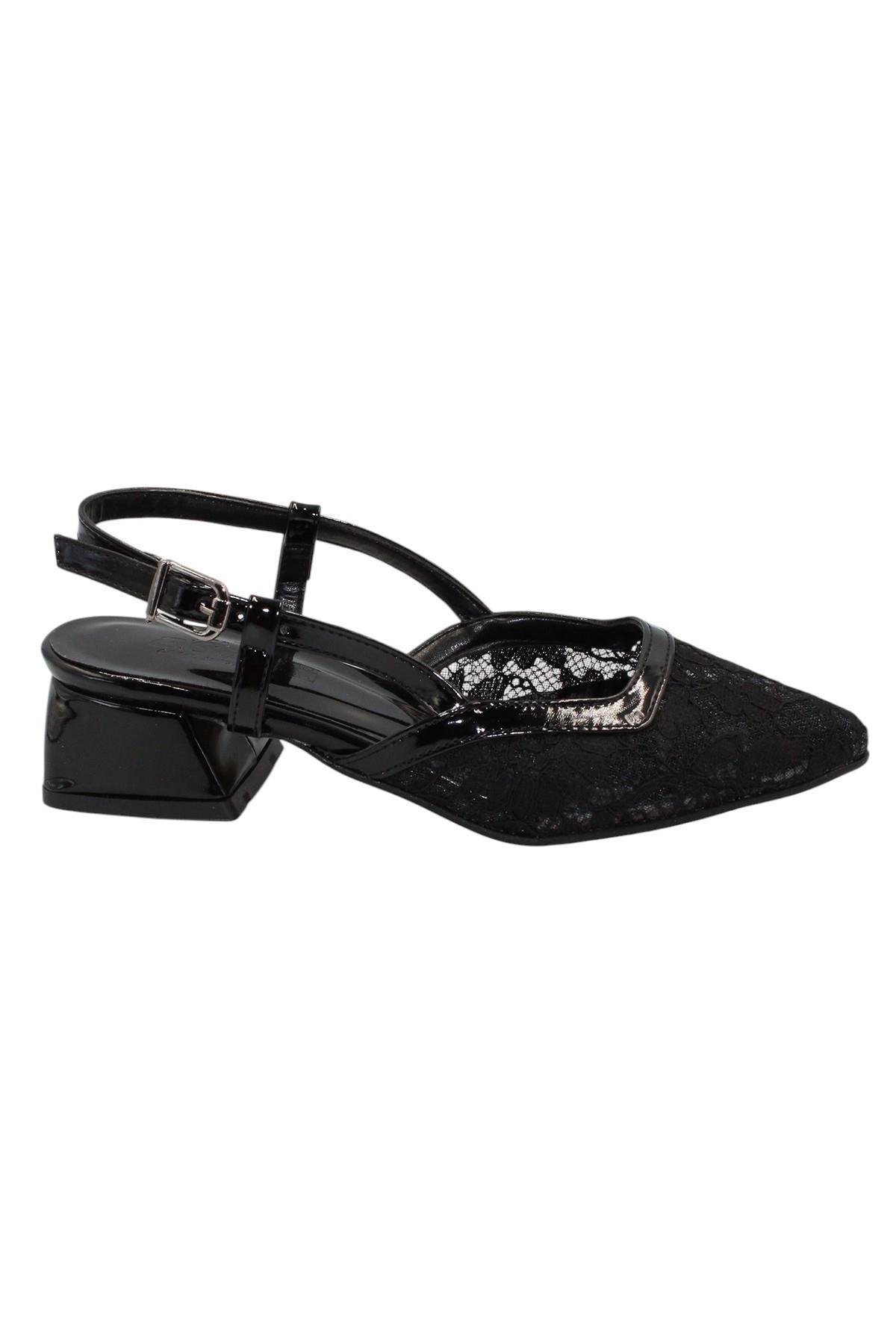 Celira Siyah Tüllü Klasik Kısa Topuk Kadın Ayakkabı (HAS00382)
