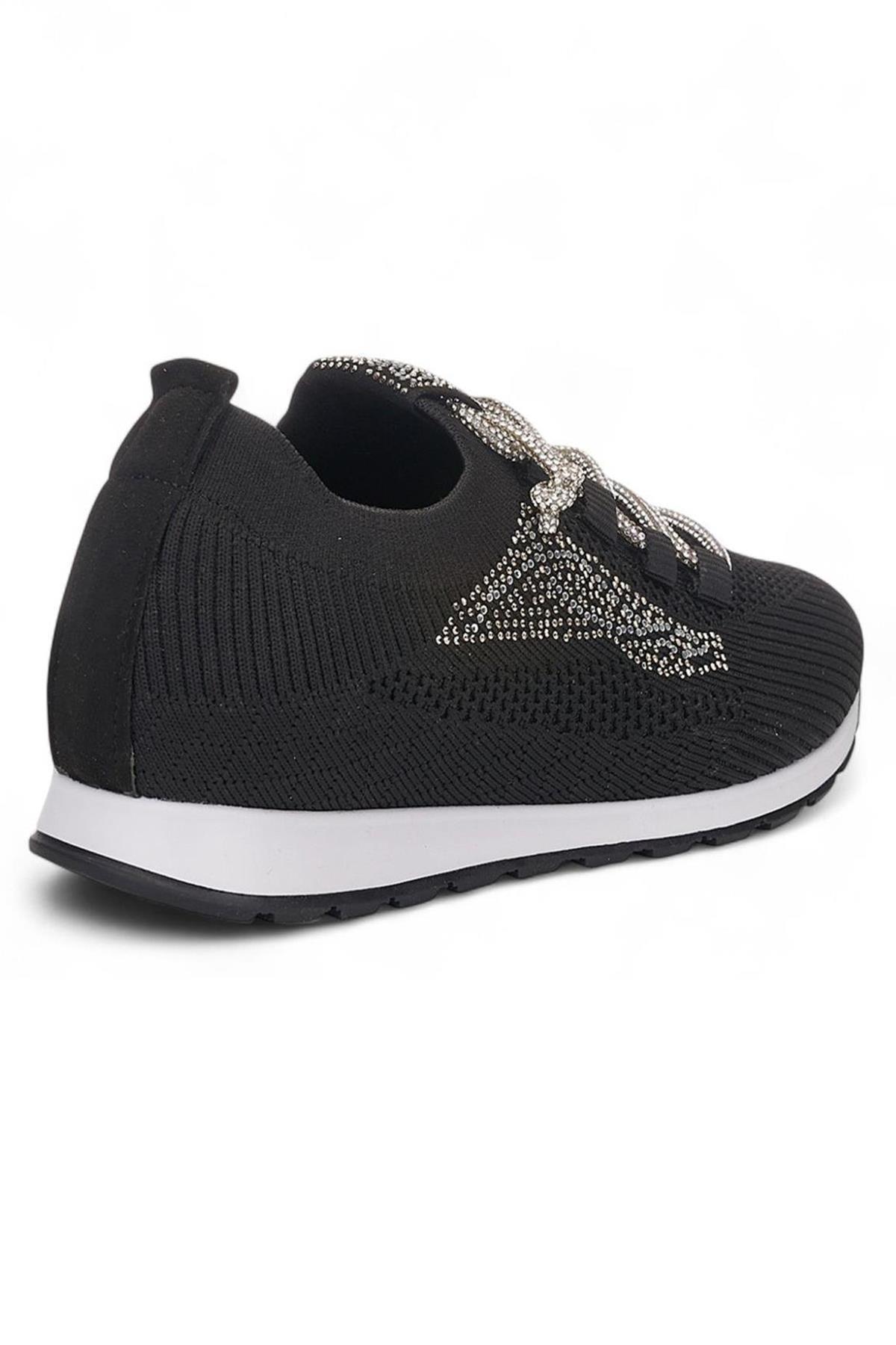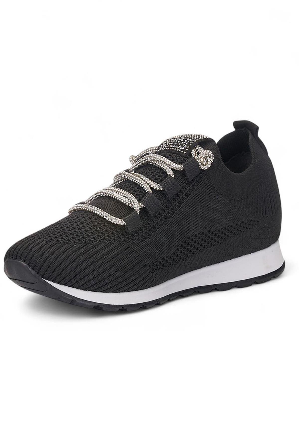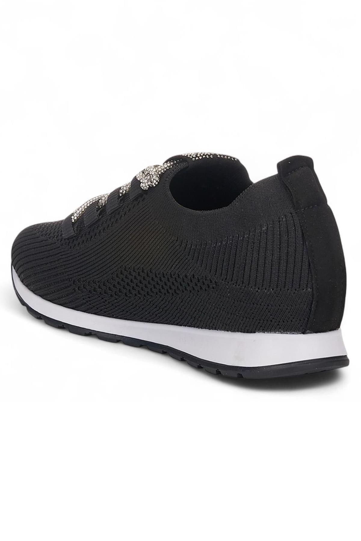 Celira Srt Siyah Triko Taşlı Bağlı Kadın Spor Ayakkabı (HAS00397)
